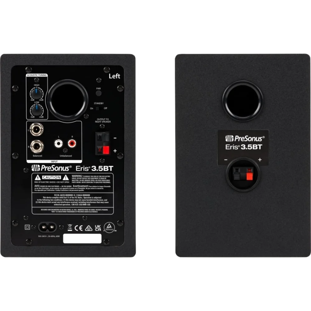 PreSonus® Eris® 3.5 BT referans monitörleri kablosuz olarak Bluetooth 5.0 veya arka paneldeki ¼ inç TRS ve RCA girişleri ile ve ön paneldeki ⅛ inç stereo line girişi ile neredeyse hemen her türlü  ses kaynağına bağlanır. Ayrıca ön panelde kolay erişilebilir (ve yüksek sesli!) ⅛ inç stereo kulaklık jakı da bulunur; Bu girişe kulaklık takıldığında hoparlörlerden gelen ses kesilir.