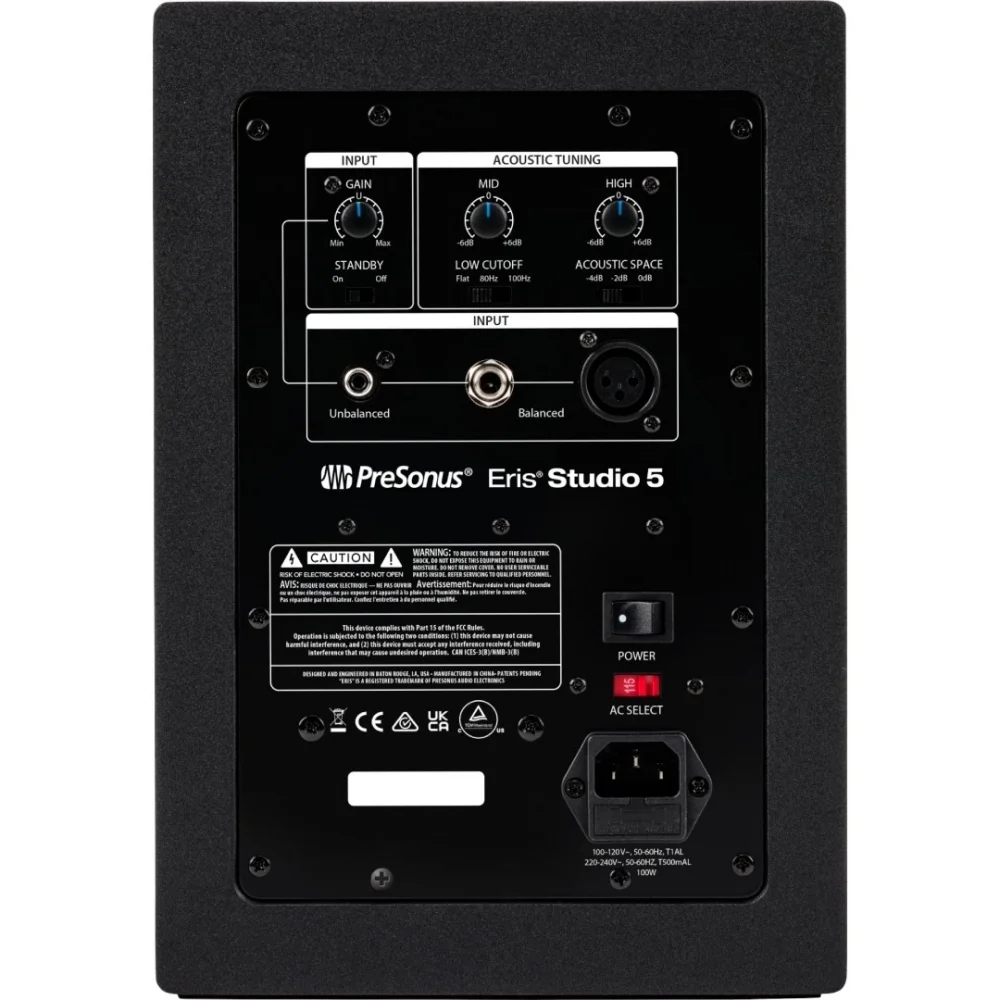 Eris® Studio 5 aktif monitörler, miks ortamınızda en "flat" yanıtı sağlamak için Akustik Ayar kontrolleri ile donatılmıştır. Low Cut (Alçak frekans kesme) , Mid (Orta) ve High (Yüksek) kontrolleri yanı sıra, bir hoparlörün duvara çok yakın bir yere yerleştirildiğinde oluşan "köşe bas artışını" telafi etmek için kolayca kullanabileceğiniz üç yönlü Akustik Alan ayarı bulunur.