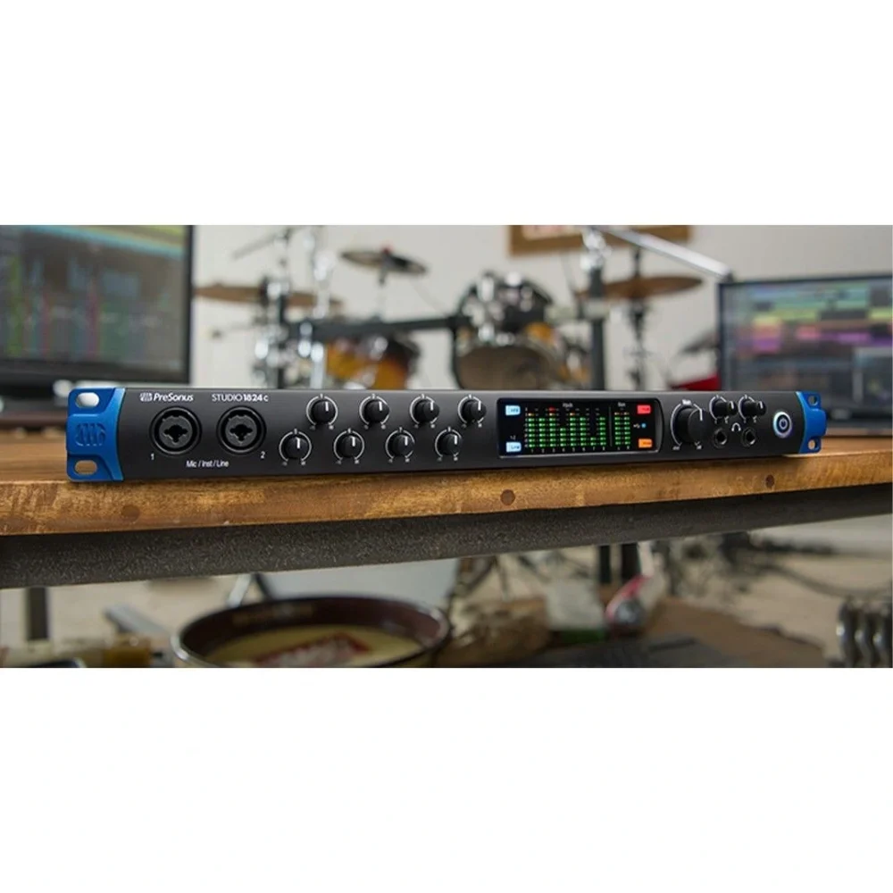 Studio serisinin en üst modeli olan Studio 1824c USB-C™ ses kartı 24-bit/192 kHz'de aynı anda 18 kanal'dan kayıt alabilir. Bu özelliği ile çok kanallı kayıt yapmak isteyenler için ideal bir çözüm sunmaktadır. Üzerinde 8 adet XMAX Class A mikrofon preamplifikatörü, ADAT ve S/PDIF giriş/çıkış bulunmaktadır. 18 adet çıkışı Studio One artist (PC Mac) ve UC Surface Pro (Mac, Windows, iPad, Android) yazılımları ile 0 gecikmeli DSP-tabanlı son derece esnek monitor miks imkanı sunmaktadır. Mute ve mono düğmeleri ne sahip olan ana çıkışların yanında DC Coupled olarak çalışan sekiz line seviyesinde çıkış, bağımsız iki ayrı kulaklık çıkış, word clock çıkış ve MIDI giriş/çıkış bulunmaktadır.