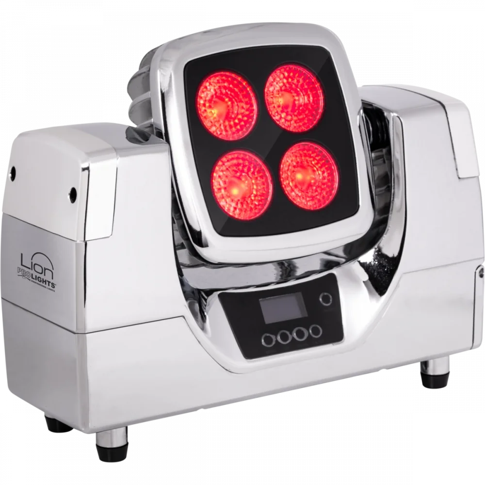 Prolights LIONCR Battery LED projector, 4x10W RGBW/FC, 15-30°, 18h auton., WDMX, IP54, Chrome