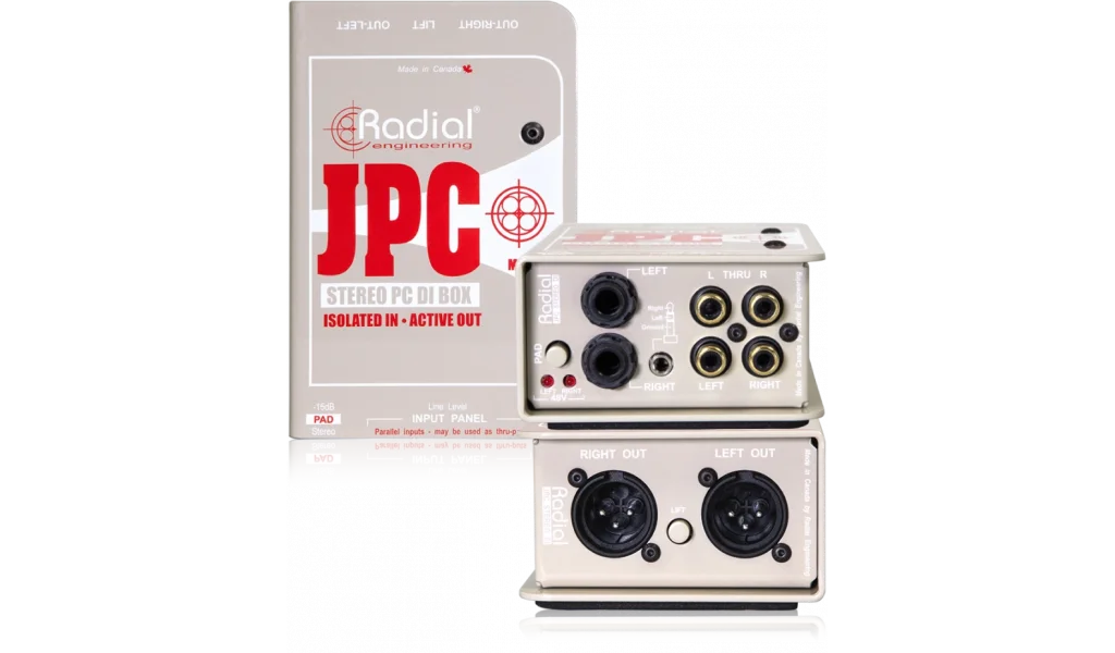 JPC, hemen hemen tüm tüketici elektroniği cihazlarıyla kolayca kullanılabilen bir stereo direct box’tır. Hibrit bir devre oluşturmak için aktif tampon devreler ve transformatör izolasyonu kullanır. Bu sayede toprak döngülerini engeller ve sistem gürültüsünü azaltır. Ayrıca, AC blokaj kapasitörleri sayesinde ses sisteminden gelen gürültünün bilgisayara geri sızmasını önler.