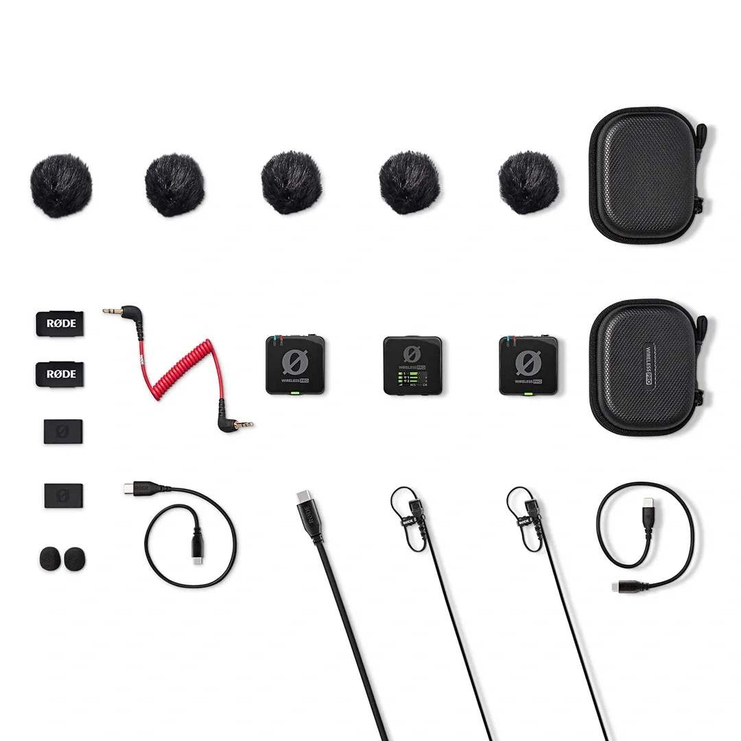 Wireless PRO, kutusundan çıkar çıkmaz kablosuz ses kaydına hemen başlayabilmeniz için gereken her şeyi içerir. İki adet profesyonel Lavalier II mikrofon, açık hava kullanımı için tüylü rüzgar koruyucuları, vericilerinizi herhangi bir yere takmanızı sağlayan MagClip GO çifti, akıllı şarj kutusu ve lav'larınızı, kablolarınızı ve klipslerinizi saklamak için kullanışlı bir aksesuar paketi bulunur.