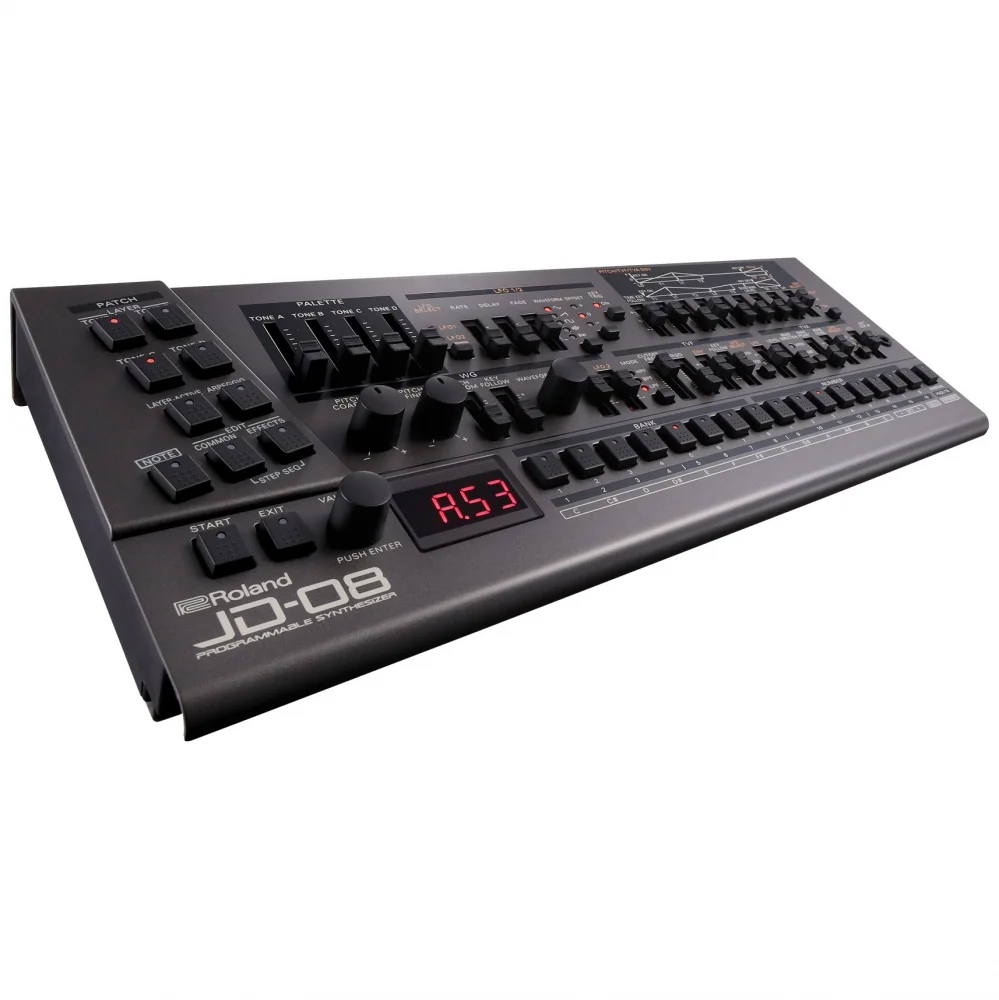 Retro iş akışı, çağrıştırıcı sesleri ve güçlü efektleriyle JD-800, 90'lar ve sonrasında en iyi elektronik müzik yapımcılarının favorisiydi. Orijinal JD-800 dalga formlarını gelişmiş modelleme teknikleriyle birleştiren JD-08, orijinalin zarif uygulamalı ses tasarımını, büyük ölçüde genişletilmiş polifoni, iki parçalı polifonik sequencer ve diğer modern güncellemelerle birlikte sunar.