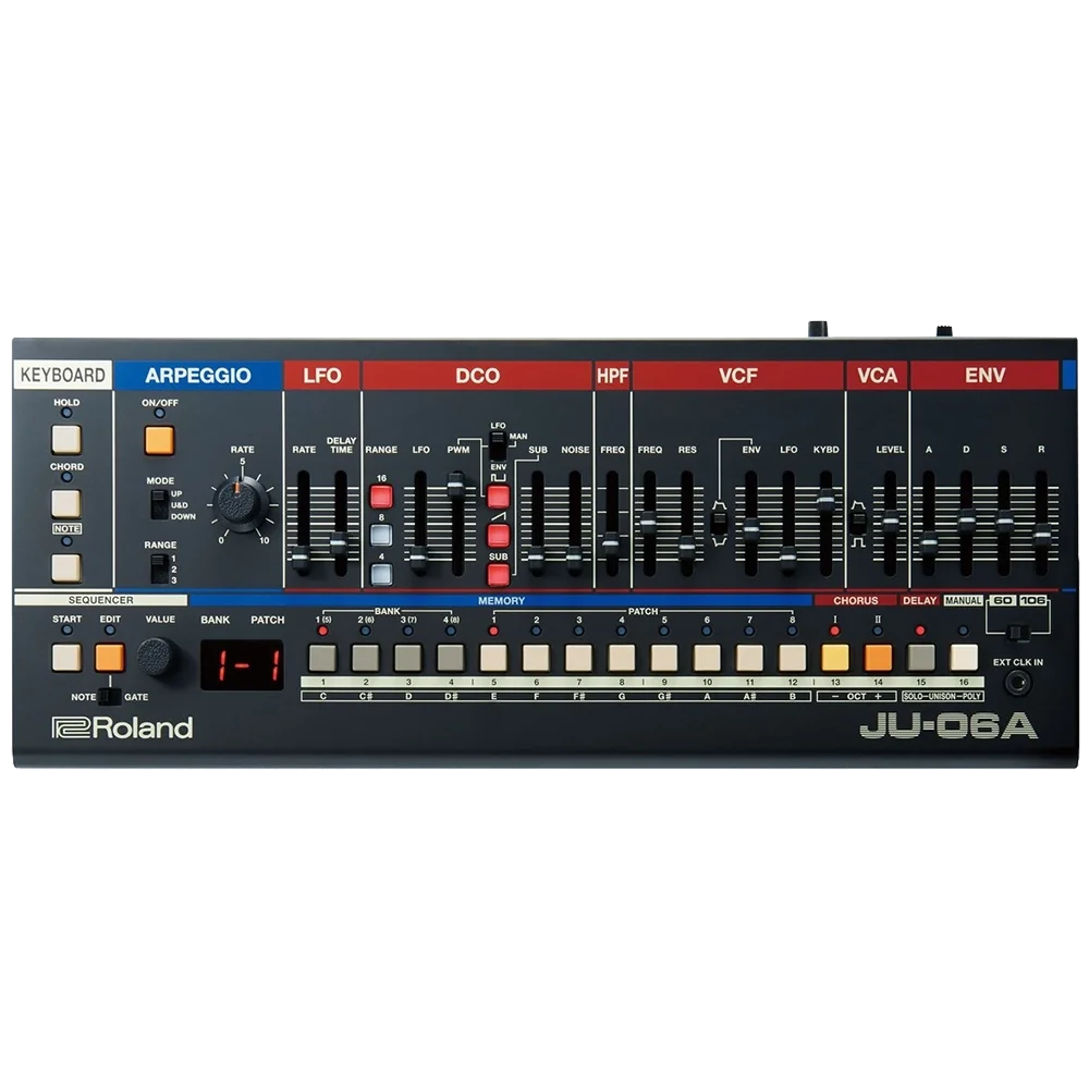 JU-06A, en iyileri olan JUNO-60 ve JUNO-106'nın bir sentezidir. 106'nın sürekli devam eden high-pass filtreleri, 60'ın kontrol edilebilir envolope ve geniş-pulse modülasyonu ve her ikisinin benzersiz filtre davranışlarına ön panelden anında ulaşılabilirsiniz. Ses, kontrolleri kurcalarken veya sıradışı ayarlarla kullanırken bile vintage olanlarından ayırt edilemez. Ve tabii ki vintage JUNO'nun sevimli ve gürültülü efsanevi chorus'lu dönen sesi olmasaydı (neyse ki ayarlanabilir şekilde), tam anlamıyla yeniden yaratılmış sayılmayacaktı.