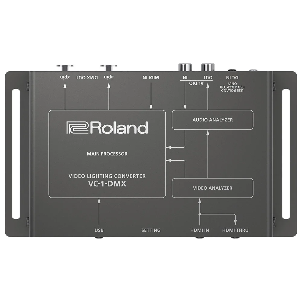 Tüm DMX donanımınıza otomatik dönüştürme ve dağıtım için video, ses ve MIDI kaynaklarını VC-1-DMX'e bağlayın. Birden fazla aydınlatma cihazını zincirleme bağlamak ve bunları aynı anda kontrol etmek bile mümkündür. 512 DMX sinyal kanalını kontrol etmek için dip anahtarları aracılığıyla dört kanal haritası mevcuttur ve hepsini bir bilgisayardan VC-1-DMX Kurulum Aracını kullanarak özelleştirebilirsiniz.