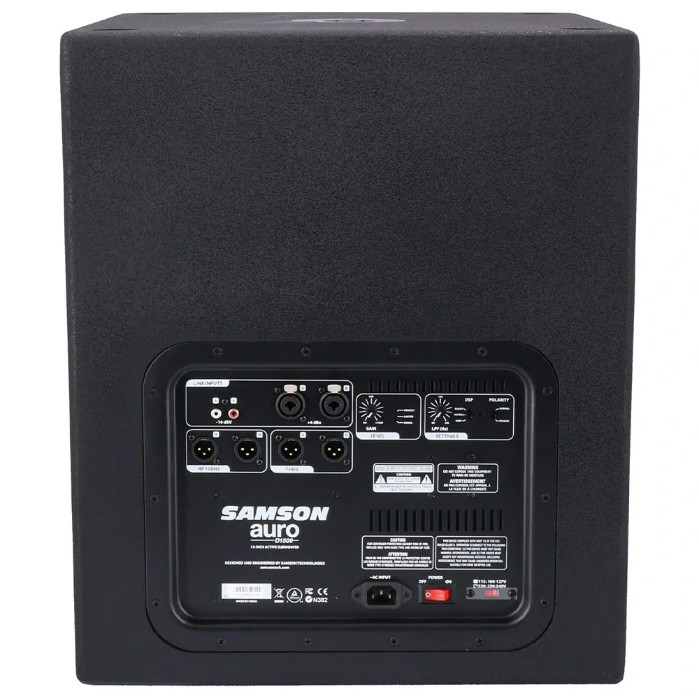 Samson D1500, düşük geçiş filtresi ve önceden ayarlanmış DSP ayarları seçici anahtarı ile donatılmış bir subwoofer'dır. LED göstergeleri amplifikatör seviyelerini gösterir ve Polarite anahtarı, faz uyumunu sağlar. 5/8" kontrplak yapısı ve dayanıklı boya kaplamasıyla sağlam bir kabine sahiptir. İki ergonomik taşıma kolu, kolay taşınabilirlik sağlar.