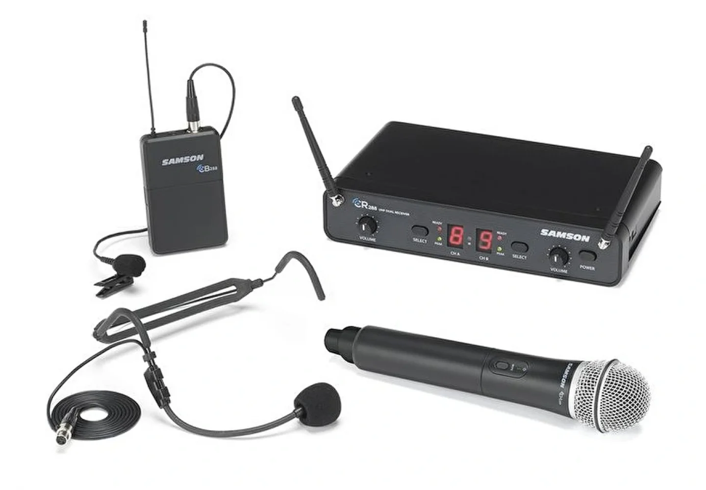 SAMSON CR288 3'ü 1 arada Kablosuz Mikrofon Seti Receiver Dual Kanal, 2 Mikrofon aynı anda çalışabilir