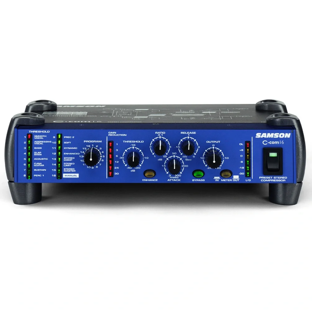 C-com opti, Samson'un tek kanallı, optik kompresörüdür ve dijital kaydın hijyenik olarak temiz sesi için mükemmel bir tamamlayıcıdır. Kompresörün ayarlanabilir eşik, oran, atak, serbest bırakma ve çıkış kontrolleri, dinamikler üzerinde iyi bir kontrol sağlarken kendine özgü yumuşak, zengin bir karakter oluşturmak için kalibre edilmiştir.