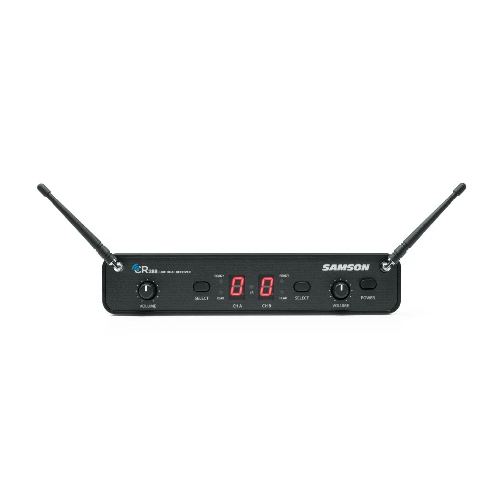 Çift kanallı, yüksek performanslı UHF kablosuz sistem1/4” ses kablosu, AC adaptör ve rackmount kiti dahildirİki adet CH288 El Tipi Vericiİki adet Q6 Dinamik Mikrofon kapsülüHer biri 2 adet AA pil ile 8 saate kadar pil ömrü sunar300 ft (91 m) çalışma mesafesiCR288 Kablosuz AlıcıHer ortamda parazitsiz performans için çoklu frekans seçenekleriAynı anda 12 adede kadar sistem çalıştırılabilir (bölgeye bağlı)Her kablosuz sinyal için ayrı ses seviye kontrolleriİki ayrı mikser kanalına yönlendirme için çift dengeli XLR çıkışıSinyalleri tek bir çıkış kanalında birleştirmek için 1/4” dengesiz miks çıkışı Özellik Değer Çalışma Mesafesi 300 ft (100 m) görüş hattı Ses Frekans Tepkisi 50 Hz – 15 kHz Toplam Harmonik Bozulma (T.H.D.) < %1 (@AF 1 kHz, RF 46 dBu) Dinamik Aralık >100 dB A-weighted Sinyal/Gürültü Oranı >85 dB Ton Anahtar Frekansı 32.768 kHz Özellik Değer Mikrofon Elemanı Q6 Dinamik Giriş Kazanç Aralığı 28 dB RF Gücü 10 mW EIRP Güç Gereksinimleri 2 x AA (LR6) alkalin pil Pil Ömrü 8 saat Boyutlar (YxÇ) 260 mm x Ø54 mm Ağırlık 218 g Özellik Değer Ses Çıkış Seviyesi - Mix Dengesiz +14 dBu Ses Çıkış Seviyesi - Dengeli +14 dBu Ses Çıkış Empedansı - Dengesiz 1k Ohm Ses Çıkış Empedansı - Dengeli 470 Ohm Hassasiyet -100 dBm / 20 dB sinad Görüntü Bastırma >50 dB Çalışma Voltajı 15 VDC 300 mA Boyutlar (UxGxY) 210 mm x 125 mm x 44 mm Ağırlık 450 g
