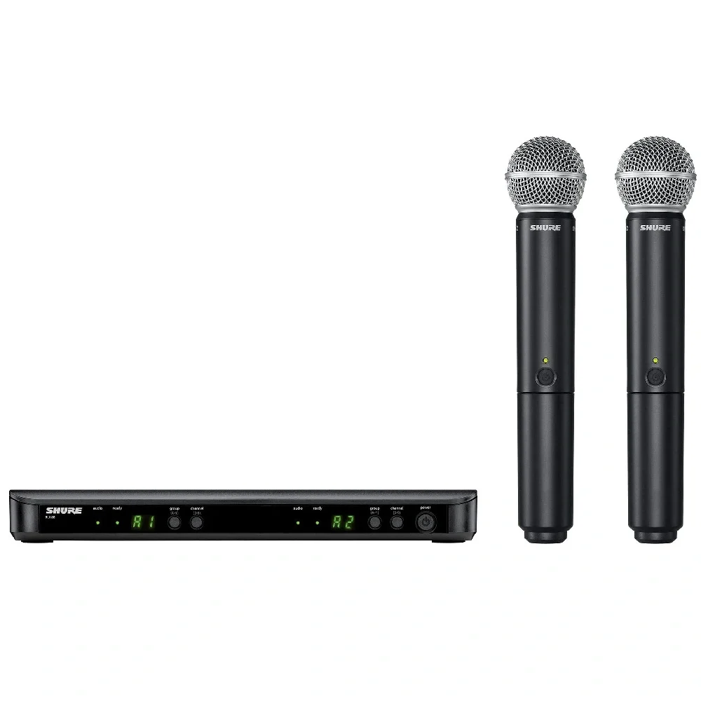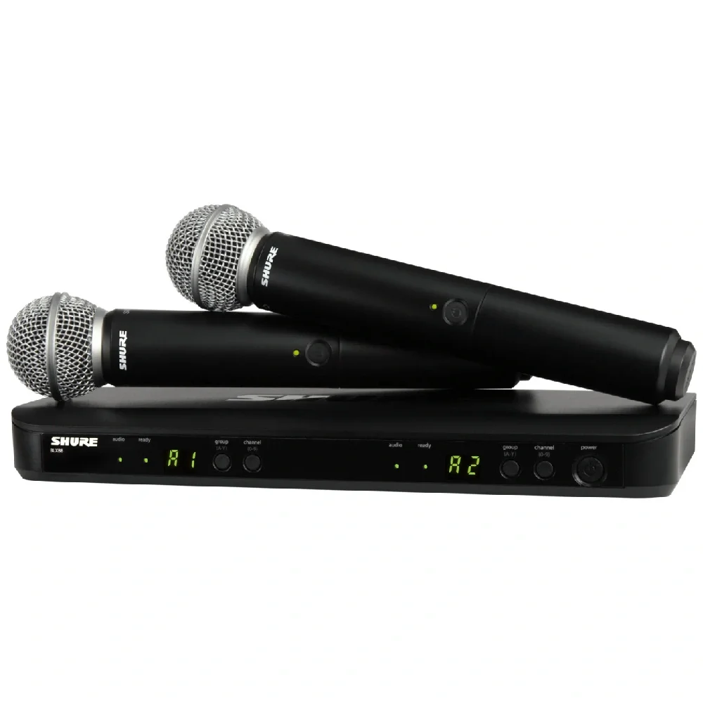 BLX288/SM58 Kablosuz Çift Vokal Sistemi, BLX Kablosuz'un basit kablosuz kurulumu ve profesyonel kalitedeki performansını sunan bir üründür. İki adet SM58 vokal mikrofonu ve çift alıcı içerir.