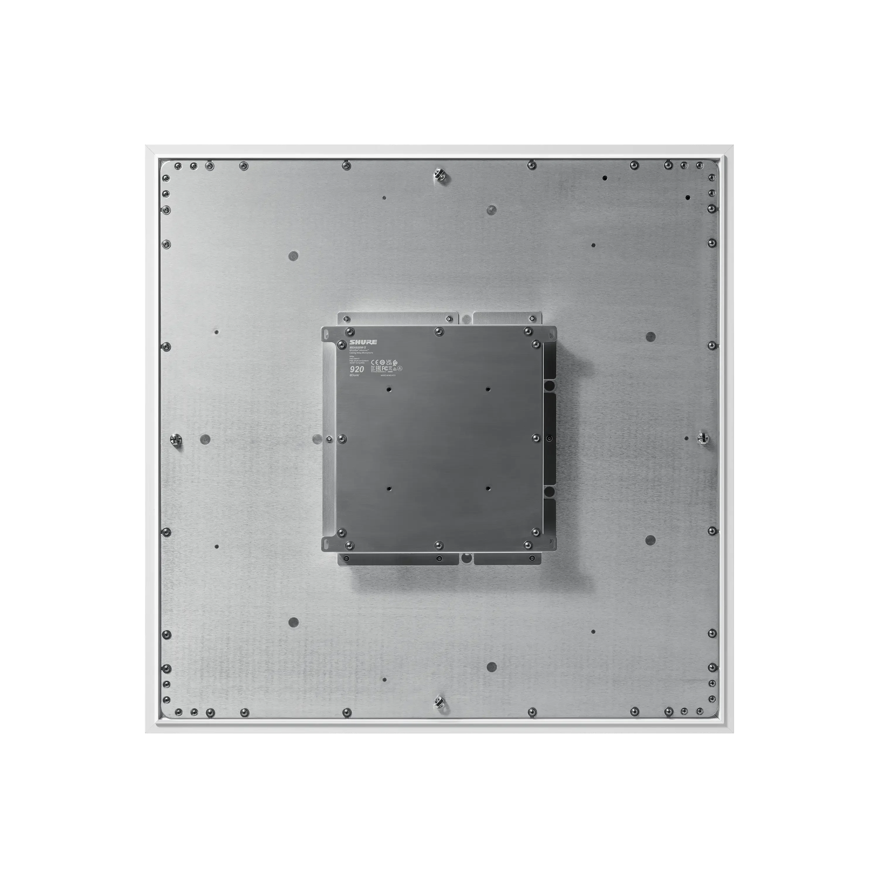 Shure Microflex MXA920, 8x8 array ceiling microphone'dır. 8 bağımsız steerable coverage lobe (beam) ve IntelliMix DSP ile büyük toplantı odaları, konferans salonları ve hibrit sınıflarda 180° kapsama sağlar. Dante/AES67 ağ uyumlu, otomatik gain, noise reduction ve echo cancellation ile temiz, doğal ses sunar. 60x60 cm standart tavan panel boyutunda, estetik ve kolay montajlıdır – Shure MXA serisinin amiral gemisi.