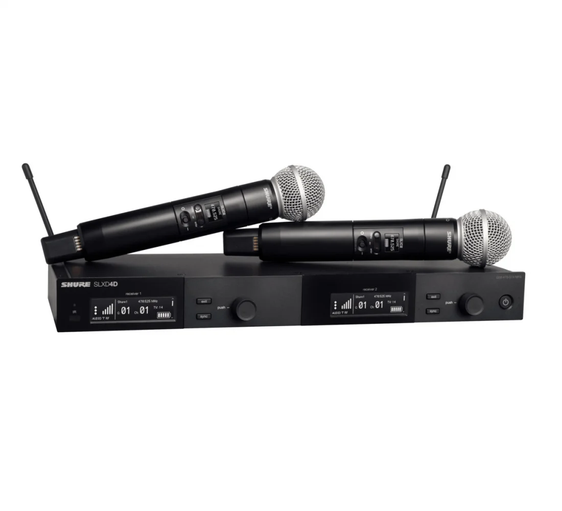 Shure SLXD24DE/SM58 Kablosuz sistem, konferans salonu, tiyatro veya halka açık alanda kullanılır. Shure SLX-D kablosuz sistemleri çok çeşitli modellerde mevcuttur. Gelişmiş pil teknolojisi ile şeffaf 24 bit ses kalitesi, kolay kurulum ve tamamen güvenilir RF performansı sunarlar. Seri, 1 kanallı yarım 19 inç alıcılar ve 2 kanallı 19 inç alıcılar, el tipi ve vücut tipi vericiler ve yaka mikrofonları ve kulaklıklar dahil olmak üzere vokal, konuşma veya enstrüman uygulamaları için geniş bir mikrofon yelpazesi içerir. Antenler ve anten ayırıcılar gibi kapsamlı Shure UHF aksesuarlarıyla uyumludur. Sistem, 44 MHz frekans bandı başına 32ye kadar uyumlu kanalın kullanılmasına izin verir.