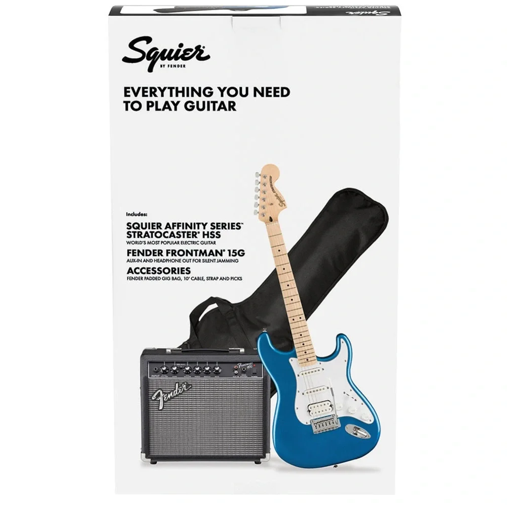 15 watt saf Fender tonu veren Frontman 15G amplifikatör, üç bantlı EQ'ya, sessiz uygulama için kulaklık jakına ve bir medya cihazını bağlamak için bir aux girişine sahiptir. Birlikte verilen dolgulu Gig Bag, penalar, gitar askısı ve 10 inç kablo ile Squier Affinity Stratocaster HSS Pack, müziğe olan ilginizi ömür boyu sürecek bir tutkuya dönüştürmek için ihtiyacınız olan her şeye sahiptir.