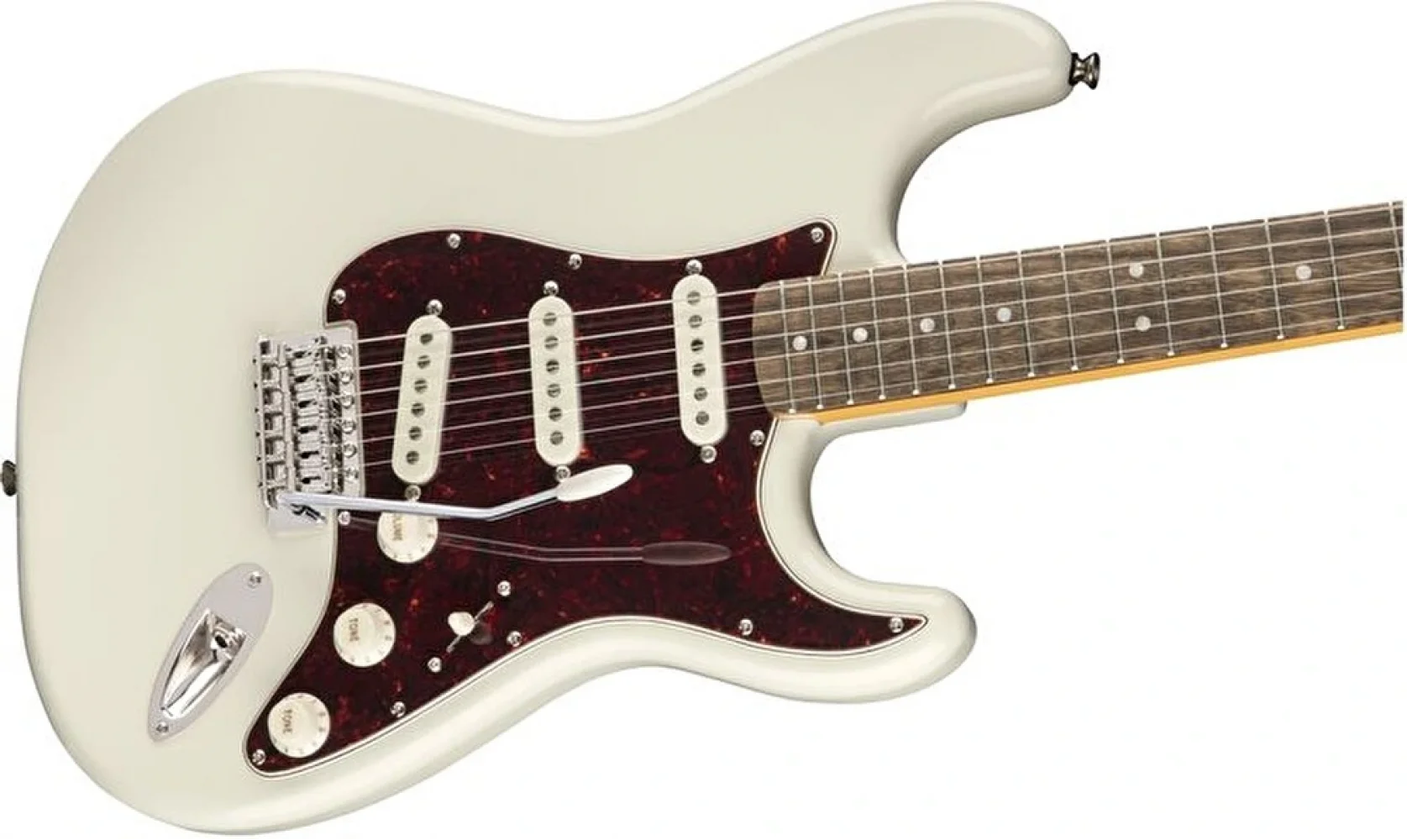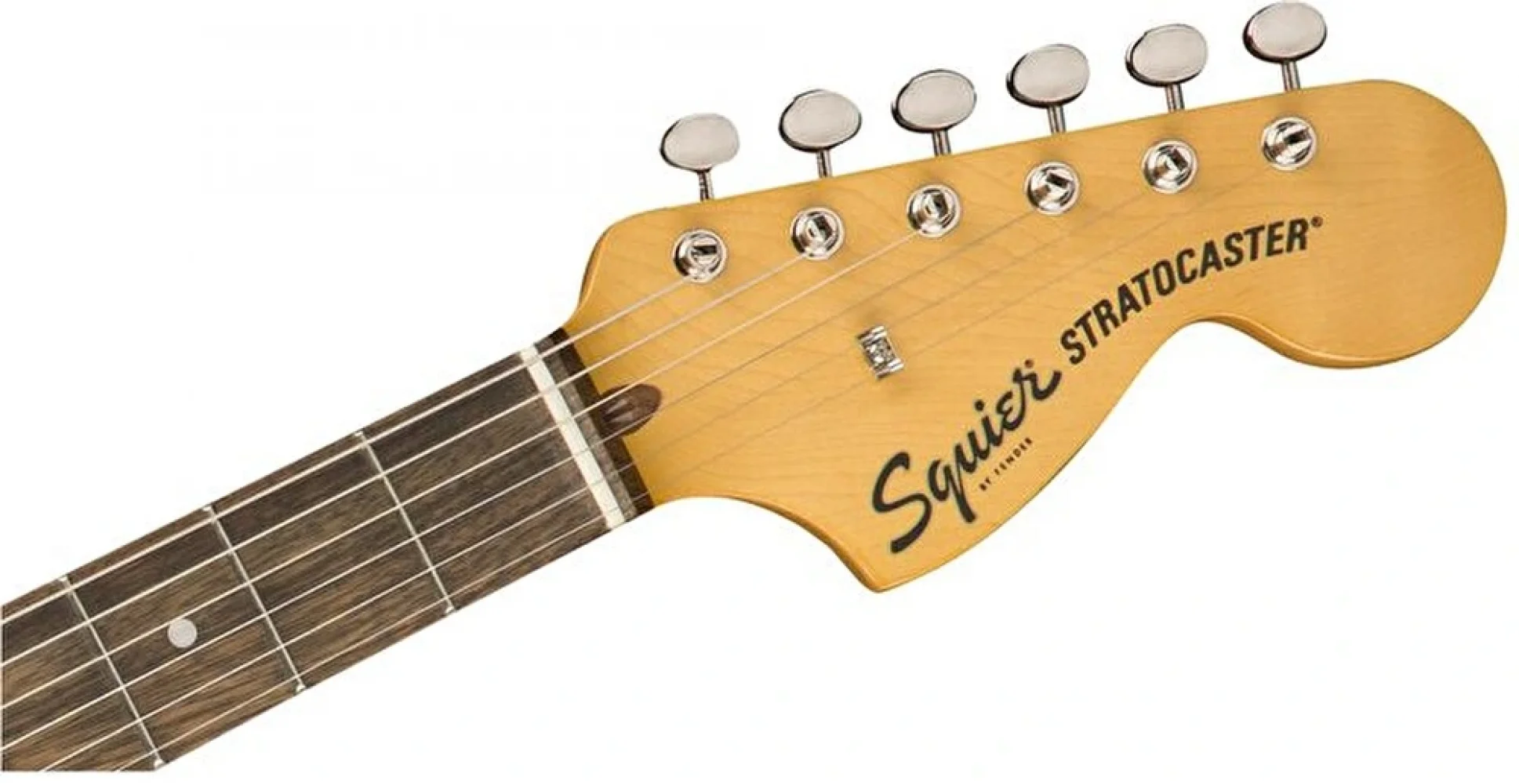 1970'lerde üretilen büyük headstock'lı Strat® modellerinden ilham alan Classic Vibe '70s Stratocaster, Fender tasarımlı alnico single manyetik üçlüsünün gücüyle inanılmaz bir ton yaratır. Gitarist dostu özellikler arasında, çalımı rahat 9,5” yarıçaplı klavyeye ve dar uzun perdelere sahip ince, rahat “C” şekilli sap profili ve etkileyici tel bükme efektleri için vintage tarzı bir tremolo sistemi bulunur. Bu nostaljik Squier modeli aynı zamanda 1970'lerden ilham alan headstock'a, zengin görünümlü nikel kaplama donanıma ve eski tarz bir hava için kaygan, vintage renkli parlak sap kaplamaya sahiptir.