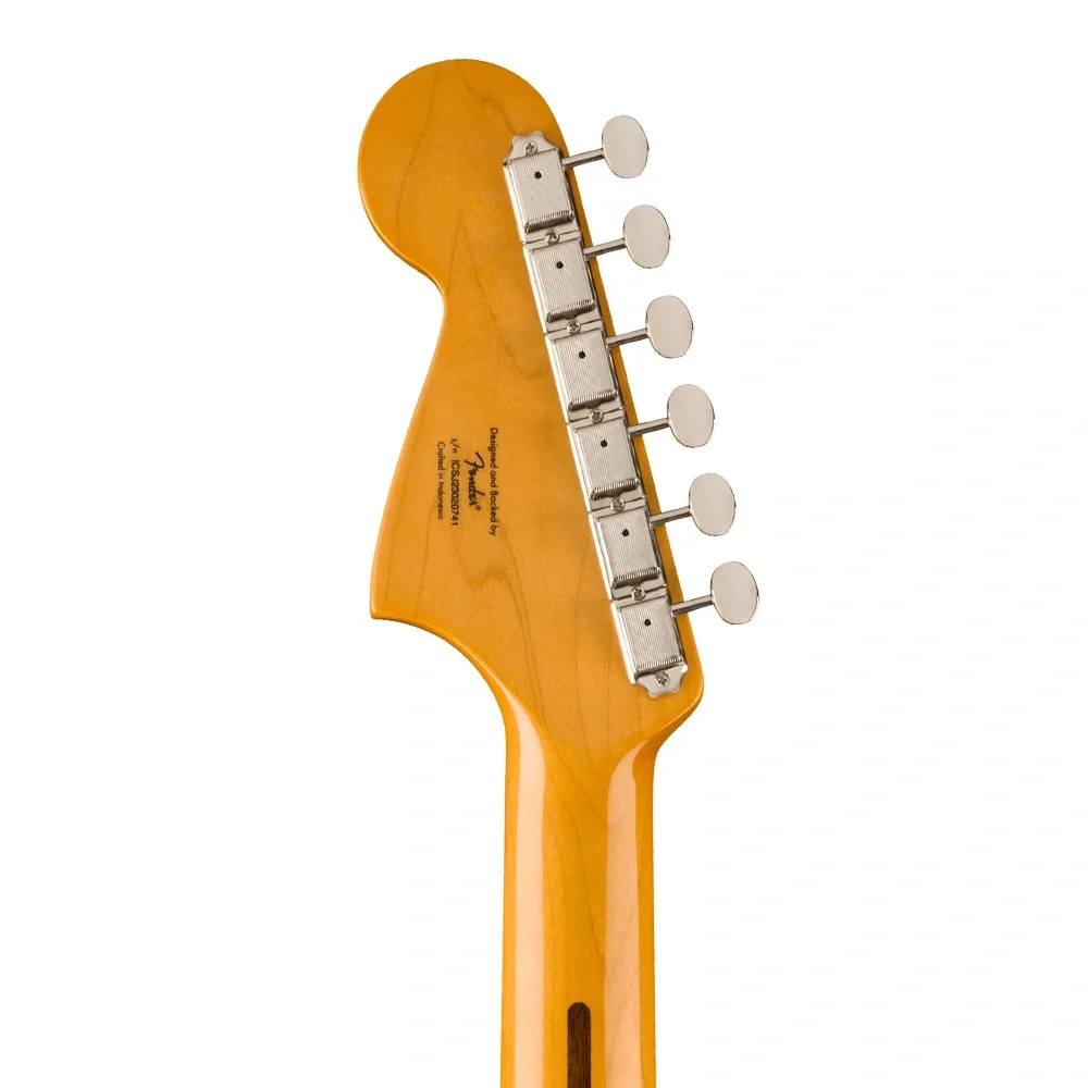 Classic Vibe '70s Jaguar®, retro tarzı güçlendirir ve çift Fender tasarımı tekli alnico manyetikleriyle harika tonlar üretir. Küçük ellere sahip olanlar, 24" ölçekli kısa sap ve rahat "C" şekilli ince sap profili ile 9.5" eğimli klavye ve dar-uzun perdelerin kolay çalınabilirliğini seveceklerdir. Bu Jaguar, orijinaline sadık kalarak, eşsiz bendler için vintage tarzı tremolo sistemi ve güçlü tel stabilitesi için floating tremolo ve fıçı tipli saddle'lara sahiptir. Ayrıca 1970'lerden ilham alan headstock, nikel kaplama donanım ve parlak vintage sap cilası ile eski tarz bir hava sunar.