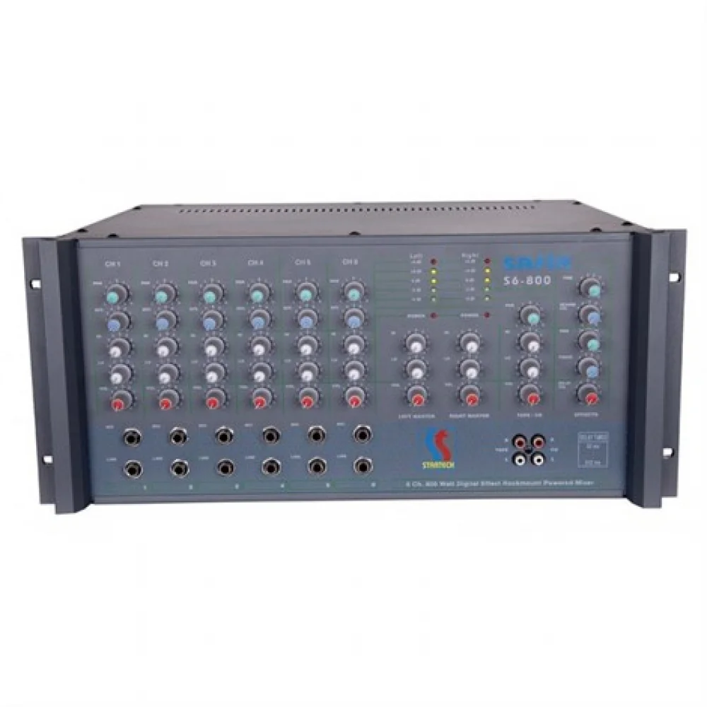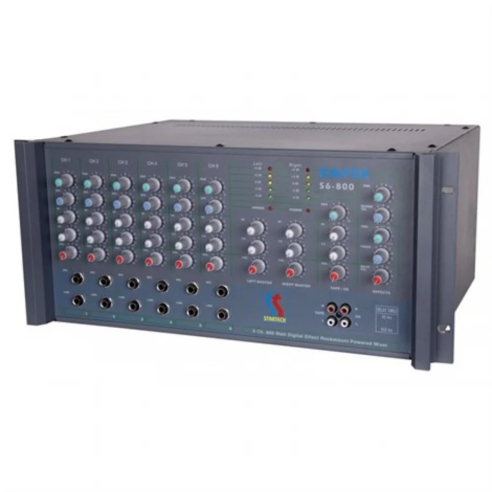 • 2x400 Watt 4 Ohm güç amplifikatörleri • Dahili 400 watt güç amplifikatörü (Max) • Değişken dijital Delay / Reverb • 6 Dengesiz mikrofon / hat girişi ¼” TRS jakları • Mono kanallarda süper müzikal 2 bant EQ