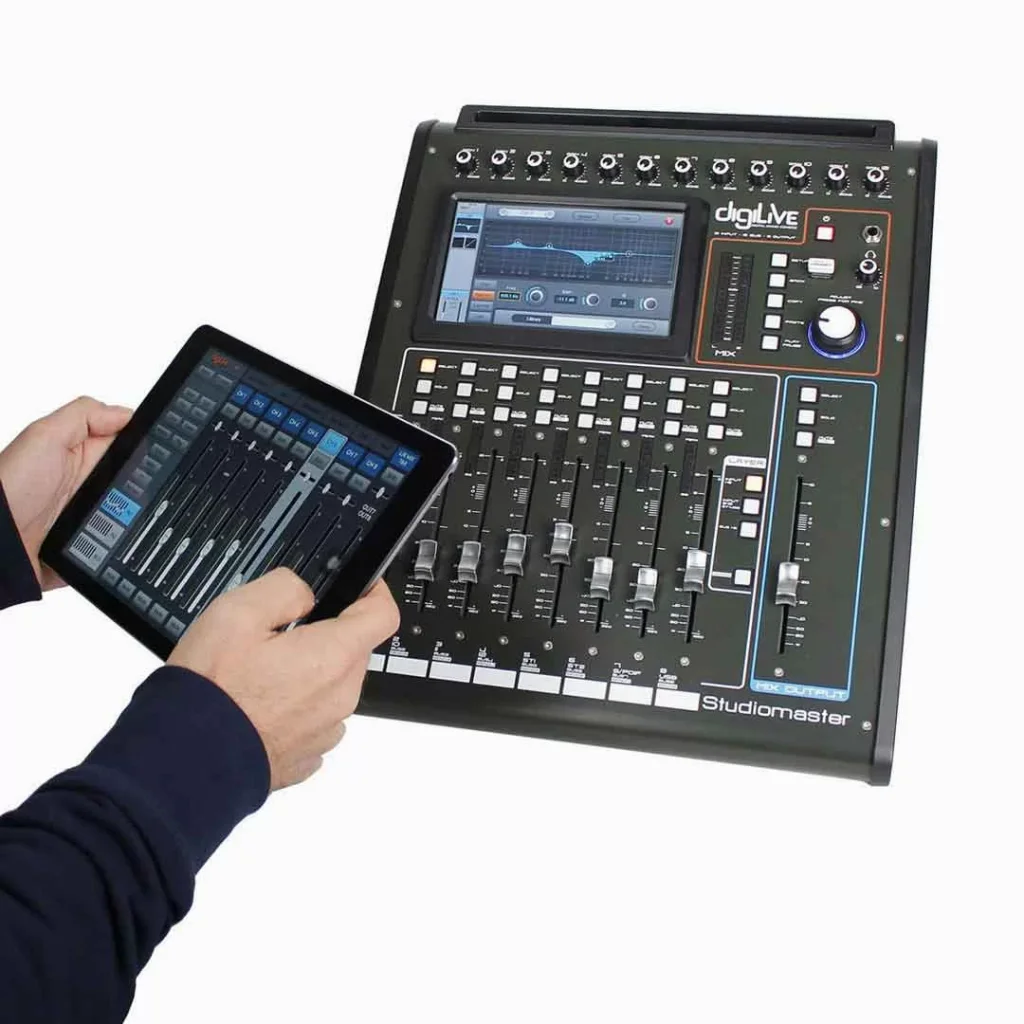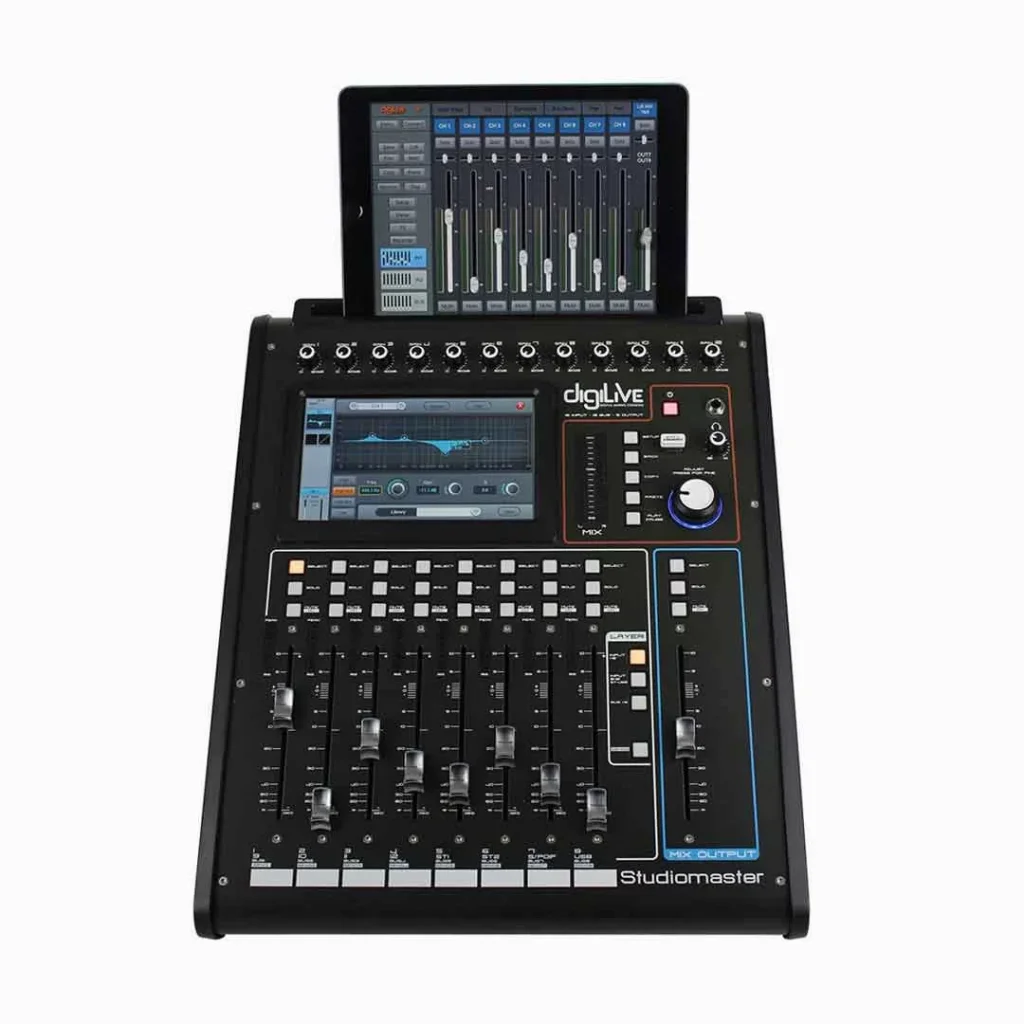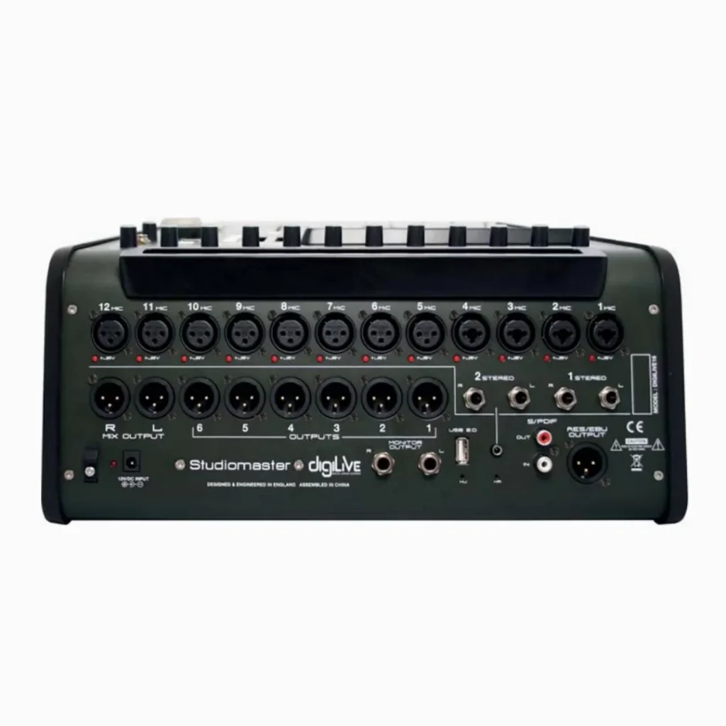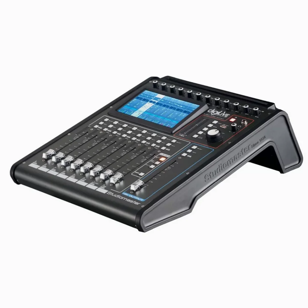 Studiomaster DigiLive-16 16 girişli, motorlu faderli, geniş dokunmatik ekranlı, USB portları ile canlı miksaj için ihtiyacınız olan her şey sağlayacak dijital mikserdir. DigiLivE16, Studiomaster'ın sinyal işlemedeki tecrübesini uzun yıllar süren Ar-Ge ve gelişen teknolojinin sunduklarıyla birleştirerek ses üzerinde tam kontrol sağlamanıza olanak veriyor.