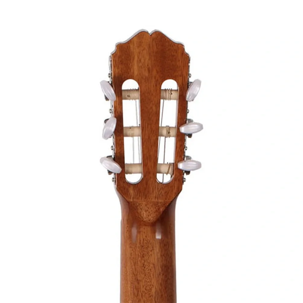 Dovetail sap bağlantısı daha iyi rezönans ve mükemmel yapısal istikrar için üstün bir ahşap bağlantısı sağlar. Sentetik kemik eşik ve köprü saddle ı, gülağacı baş kısmı, harika işlenmiş mozaik bir rozet, inci klavye işlemeleri, beyaz inci başlıklı altın burgular ve birinci sınıf parlak bir cila gitarın diğer muhteşem detaylarını oluşturuyor.