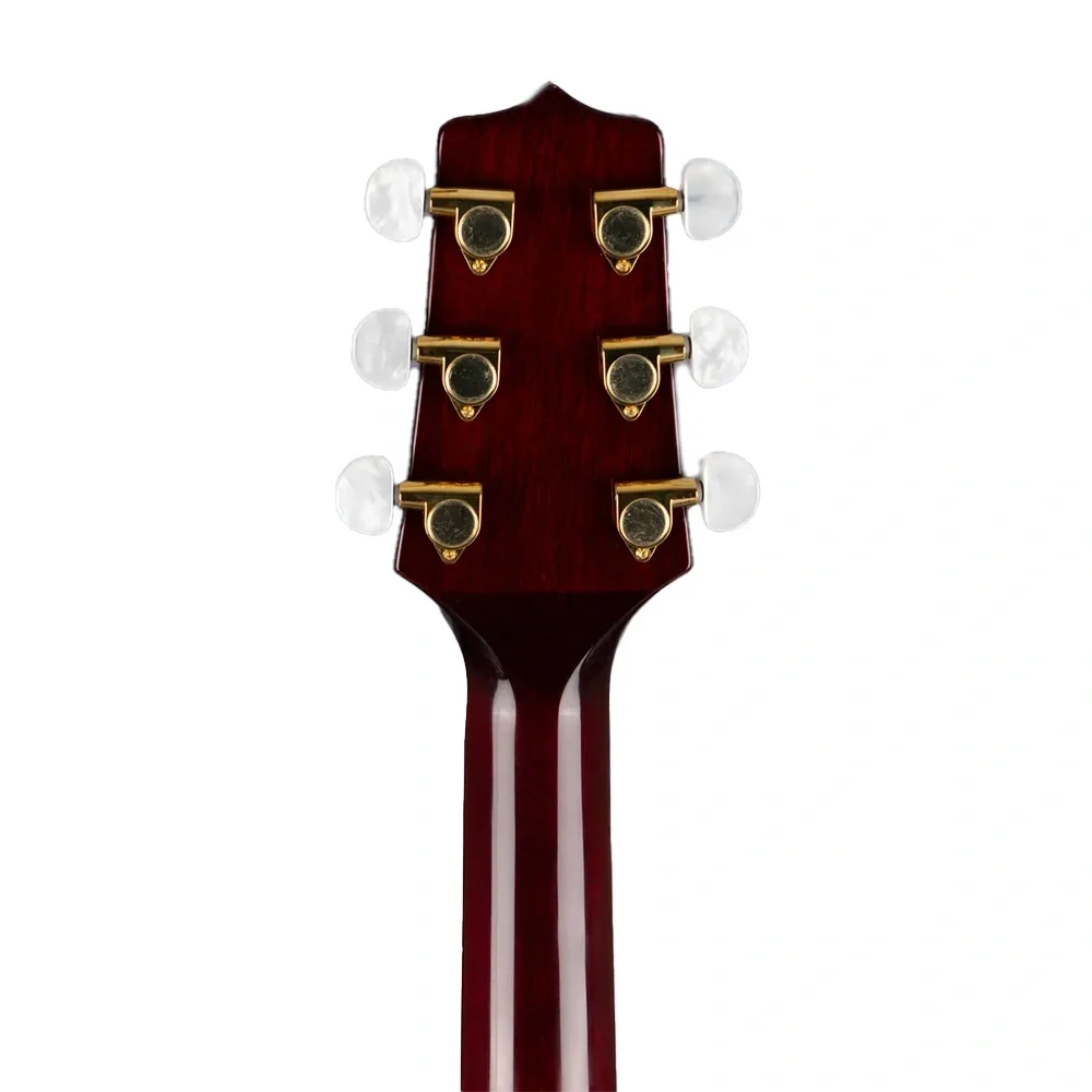 TEKNİK ÖZELLİKLER Gövde ÜstüKatı LadinGövde ArkasıAkçaağaçGövde YanlarıAkçaağaçKaplamaParlak Şarap KırmızısıSap MalzemesiAkçaağaçKlavyeGülağacıSomun Genişliği42,8 mmSomun MalzemesiSentetik KemikElektronikTakamine TK-40DKlavye Konum KakmalarıOval PearloidKöprü MalzemesiGülağacıPickguardSiyah Bir Arka Plan Üzerinde Çim Çiçek DeseniAkort BurgularıAltın Kaplama