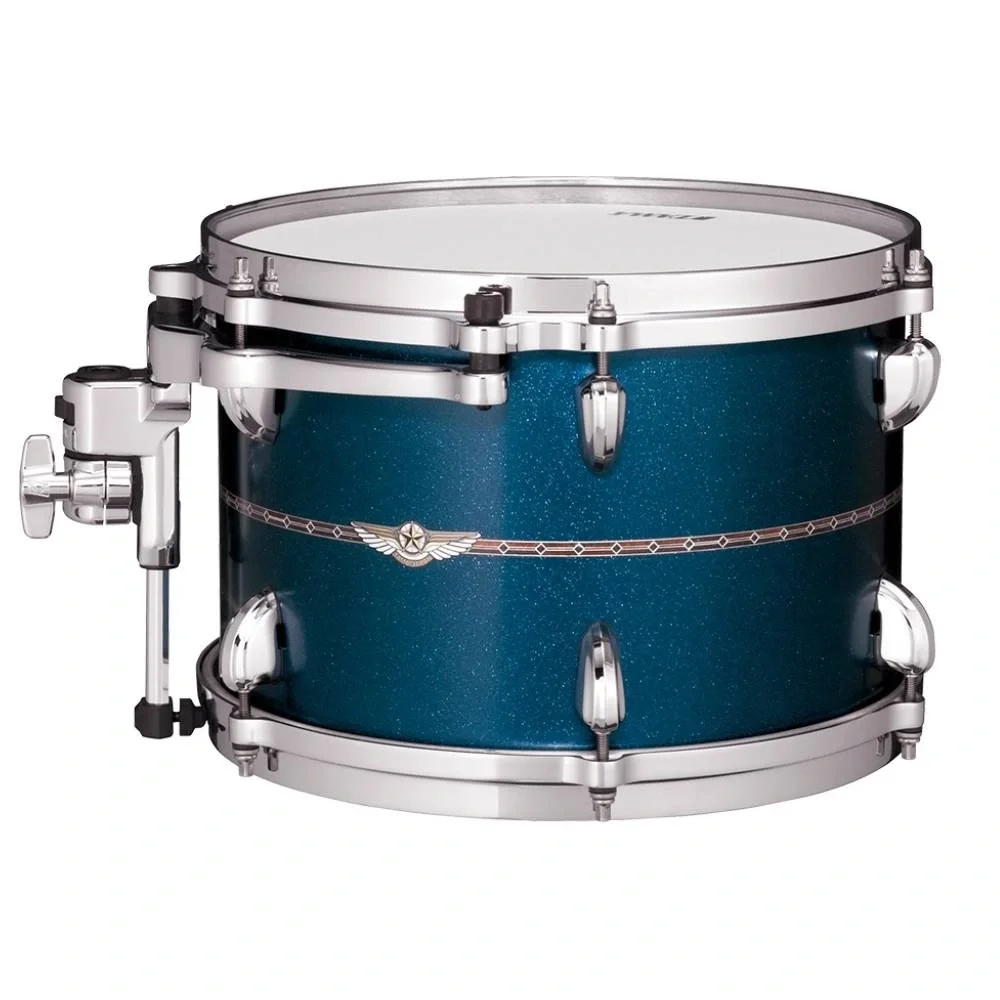 TAMA'nın yeni amiral gemisi Star Bubinga serisi, ultra yoğun Bubinga ağacından üretilmiş ve sadece 5 mm kalınlığındaki zarif kasalarıyla dikkat çeker. Her gövde, 9 mm kalınlığında Sound Focus Rings (SFR) ile desteklenmiş olup, zengin rezonans ve net projeksiyon sağlar. Satin Blue Metallic lacquer kaplama ile estetik görünümün yanı sıra güçlü ve sıcak ton karakteri sunar.