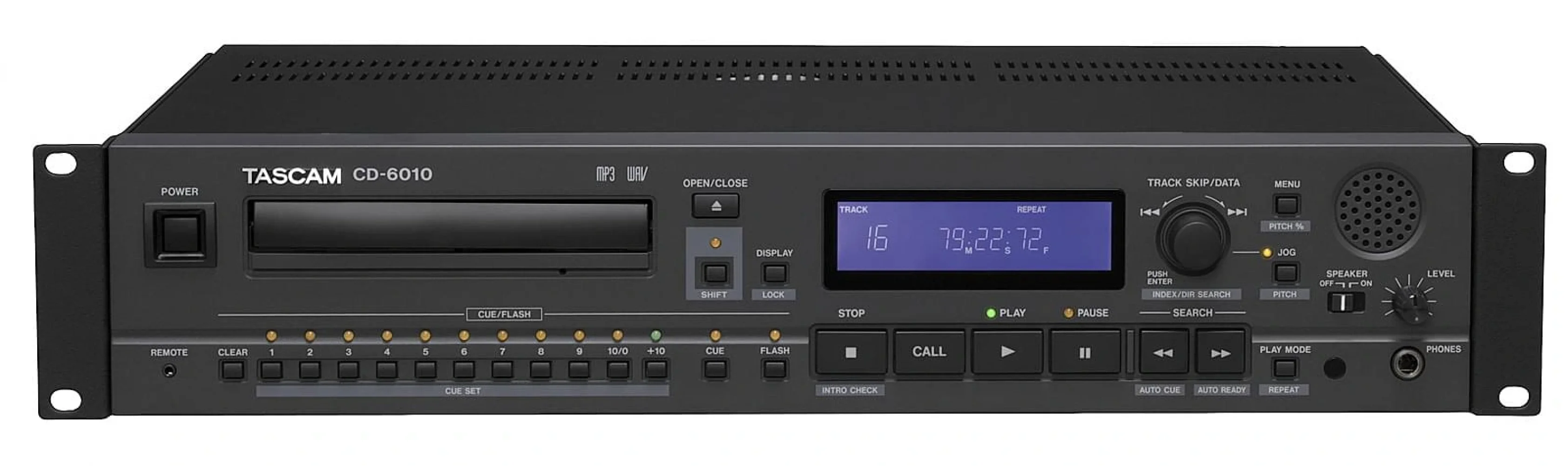 CD-6010 her türlü senaryo için birinci sınıf CD çalma özelliği sunar. Yayın pazarı düşünülerek tasarlanan bu CD çalar, tüm durumlara uyum sağlamak için bir tepsi yükleme tasarımı, güvenlik özellikleri ve bir acil durum serbest bırakma işlevi kullanır. Odyofiller arasında yüksek puan alan CD-5010B sürücüsünü kullanan CD-6010, raf tipi oynatıcılarda nadiren eşleşen yüksek kaliteli ses sunar. CD'ler Yayın, Kurulum ve Turne pazarlarında hala çok yaygın olarak kullanıldığından, CD-6010 belirtilmiştir.