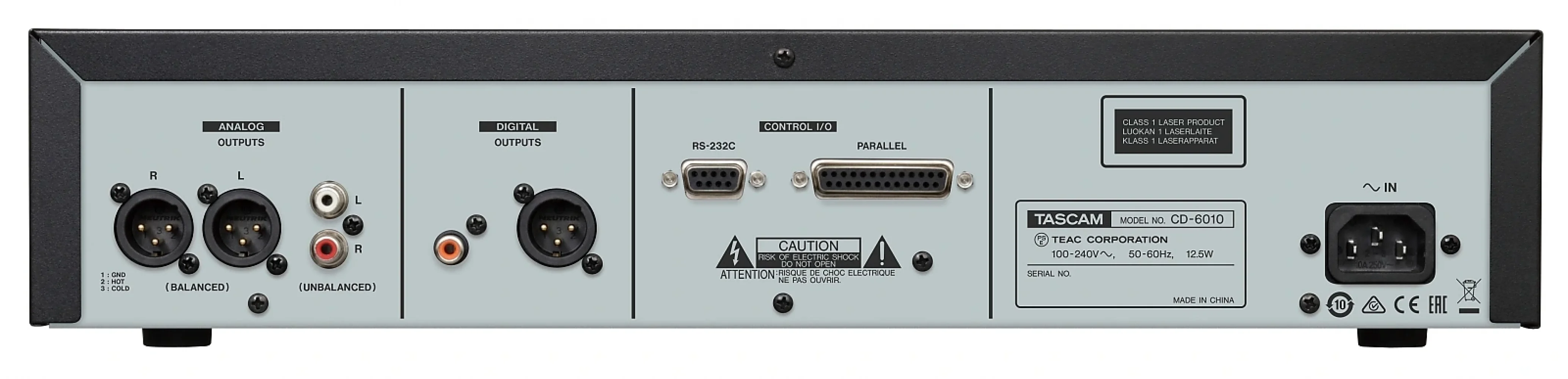 Arka panelde eksiksiz bir arayüz portu bulunur. Hem XLR dengeli çıkışlar hem de RCA dengesiz analog çıkışların yanı sıra SPDIF ve AES/EBU dijital çıkışlar sağlanır. CD-6010 RS-232C, paralel kontrol veya isteğe bağlı RC-3F ayak pedalı ile kontrol edilebilir.