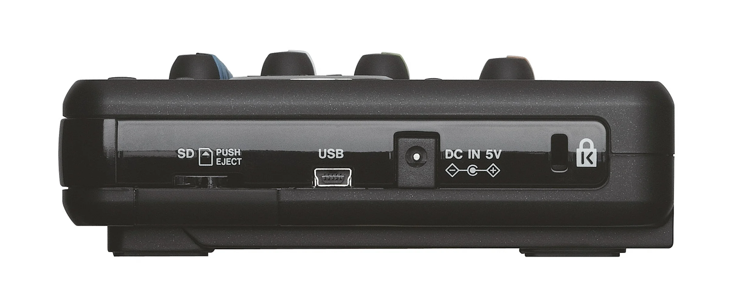 The DP-008EX has two XLR/TS inputs with phantom power for condenser microphones to connect external microphones, an electric-acoustic guitar or a line-level device like a synthesizer. With an optional conversion cable a tablet device like an iPad will be able to connect. Recordings are written to widely available SD/SDHC card media (2GB card included). All song ideas can be transferred via USB 2.0 or SD card readers to and from the unit at any point in the recording process. Numerous eiting functions are also available.