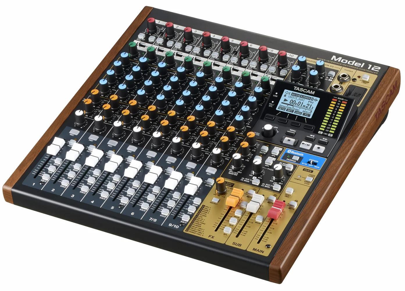 Tascam Model 12, müzik ve multimedya yaratıcıları, şarkı yazarları ve sanatçılar için tasarlanmış kompakt hepsi bir arada entegre mikser ve kayıt setidir. 10 girişli bir mikser, yüksek beğeni toplayan Tascam Model 24 çok kanallı ses kaydedicinin 12 kanallı bir versiyonu, USB ses arabirimi, MIDI bağlantısı, DAW kontrol fonksiyonları ve mix-minus ve akıllı telefon girişi dahil olmak üzere benzersiz podcasting yeteneğinden oluşur.