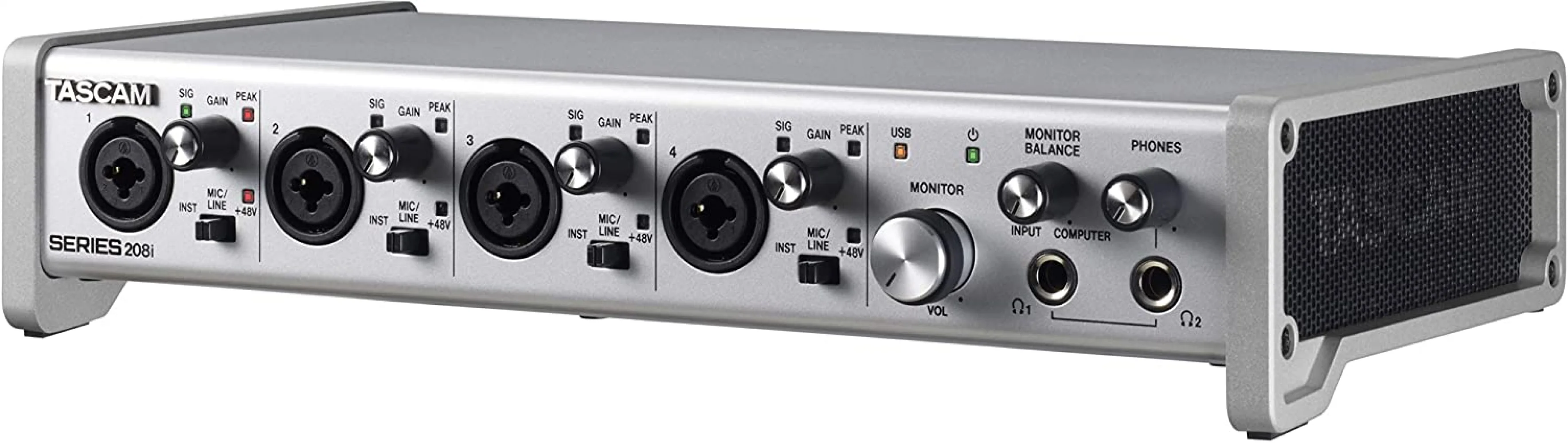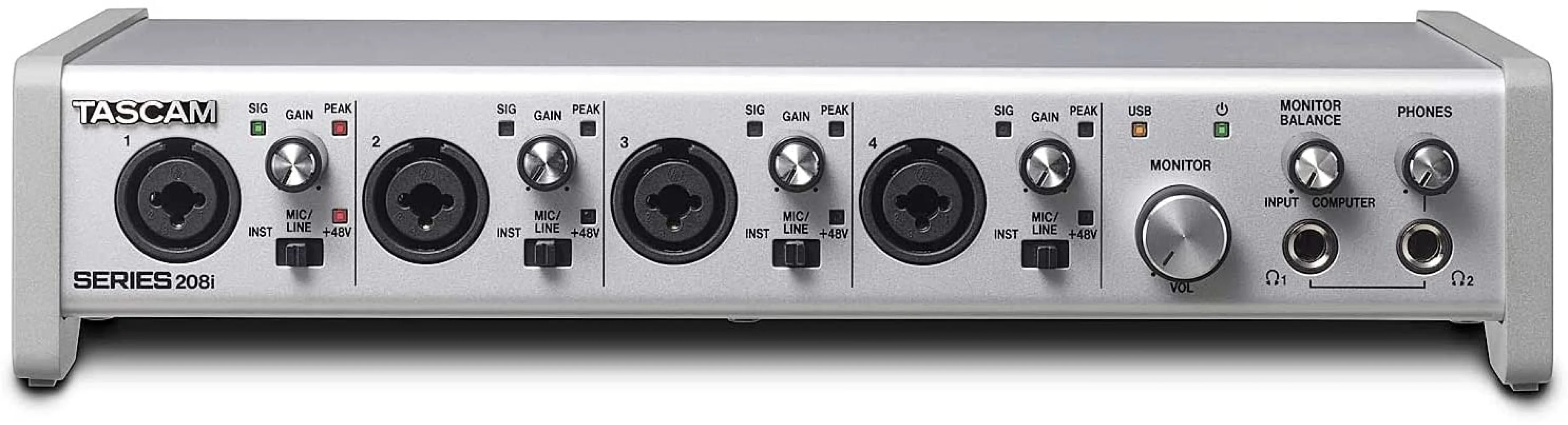 Combo inputs accept line- or instrument-level signals for recording keyboards, guitar, bass, and more
