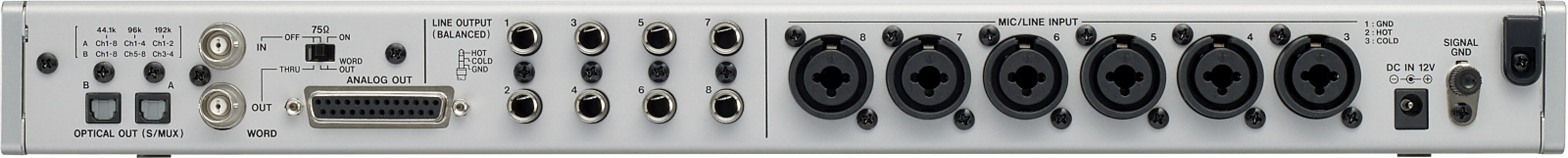 Two S/MUX optical ports can output all eight channels up to a sampling rate of 96 kHz