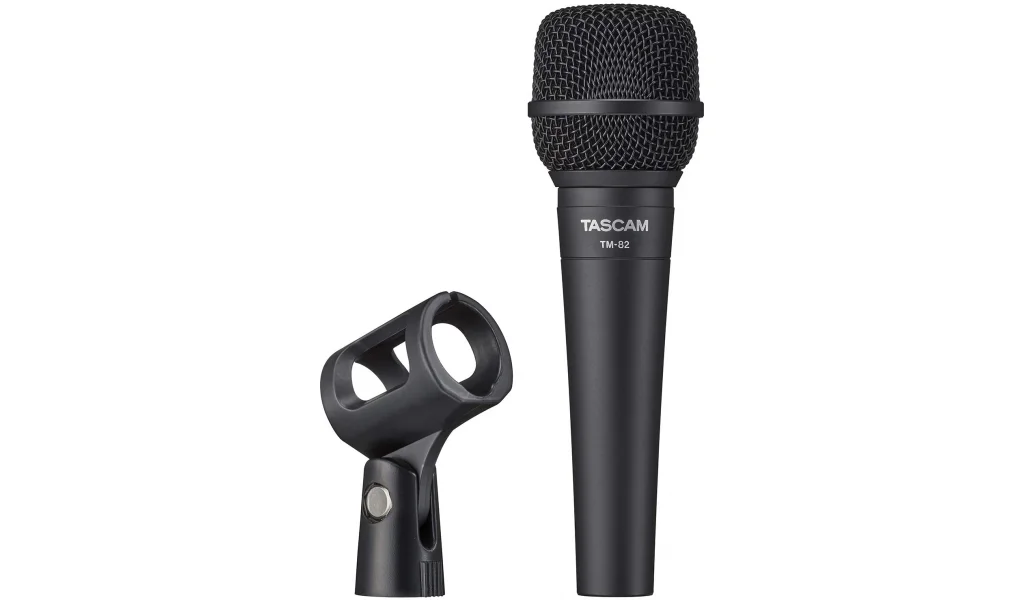 Tascam TM-82 Dynamic Microphone for Vocals and Instruments, cardioid pattern, Mic holder included