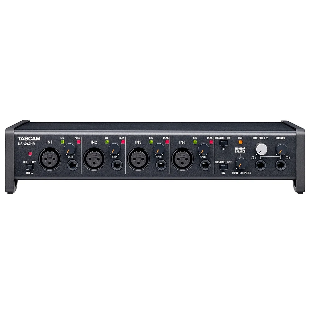US-4x4HR; vokal, gitar, eş zamanlı kayıt gibi çeşitli multimedya prodüksiyon ortamlarında ve video prodüksiyonu için yüksek kaliteli ses kayıtlarında kullanılabilen gitar giriş desteğine sahip, 2 adet mikrofon veya Line girişi ile donatılmıştır. USB-C bağlantı noktası üzerinden USB bağlantı gücüyle kolayca çalıştırılabilmektedir.