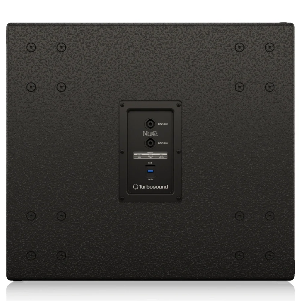 2.000 Watt NuQ115B, geniş bir müzik ve canlı ses uygulama yelpazesi için ideal olan ön yüklü 15" subwoofer sistemidir. Turbosound hoparlör yönetim sistemleri ile birlikte çalışmak üzere tasarlanmış olup, ön sahne (FOH) performansını optimize eder ve mükemmel davul ve yan dolgu monitörleme sunar.Bas refleks port tasarımına sahip NuQ115B, yüksek güçlü, çift süspansiyonlu 15" düşük frekans sürücüsü içerir. Bu sürücü, özel olarak tasarlanmış iç/dış sarımlı ses bobini kullanarak daha yüksek manyetik yoğunluk, daha iyi ısı dağılımı, yüksek güç taşıma kapasitesi ve gelişmiş verimlilik sağlar. Sonuç olarak, hızlı ve hassas geçici tepki sunarak neredeyse distorsiyonsuz bir çalışma elde edilir.Dayanıklı yarı mat siyah boya ile kaplanmış olan kabin, 18 mm (¾") huş kontrplaktan üretilmiştir. Kabin ayrıca, toz boya kaplı delikli çelik ızgara, retiküle edilmiş sünger destek, 35 mm direk yuvası, iç M10 askı noktaları ve gömülü taşıma kulpları içerir. Yüksek darbe dayanımlı iç içe geçmeli köşeler sayesinde zeminde istifleme stabilitesi sağlanır.Arka panelde, standart bükümlü kilitli hoparlör konektörleri bulunur. Ana giriş ve bağlantı (link) seçenekleri, bağımsız subwoofer kullanımı veya subwoofer ve uydu hoparlör bağlantısı için 4 çekirdekli hoparlör kablolamasıyla birlikte çalışacak şekilde değiştirilebilir giriş bağlantıları sunar.