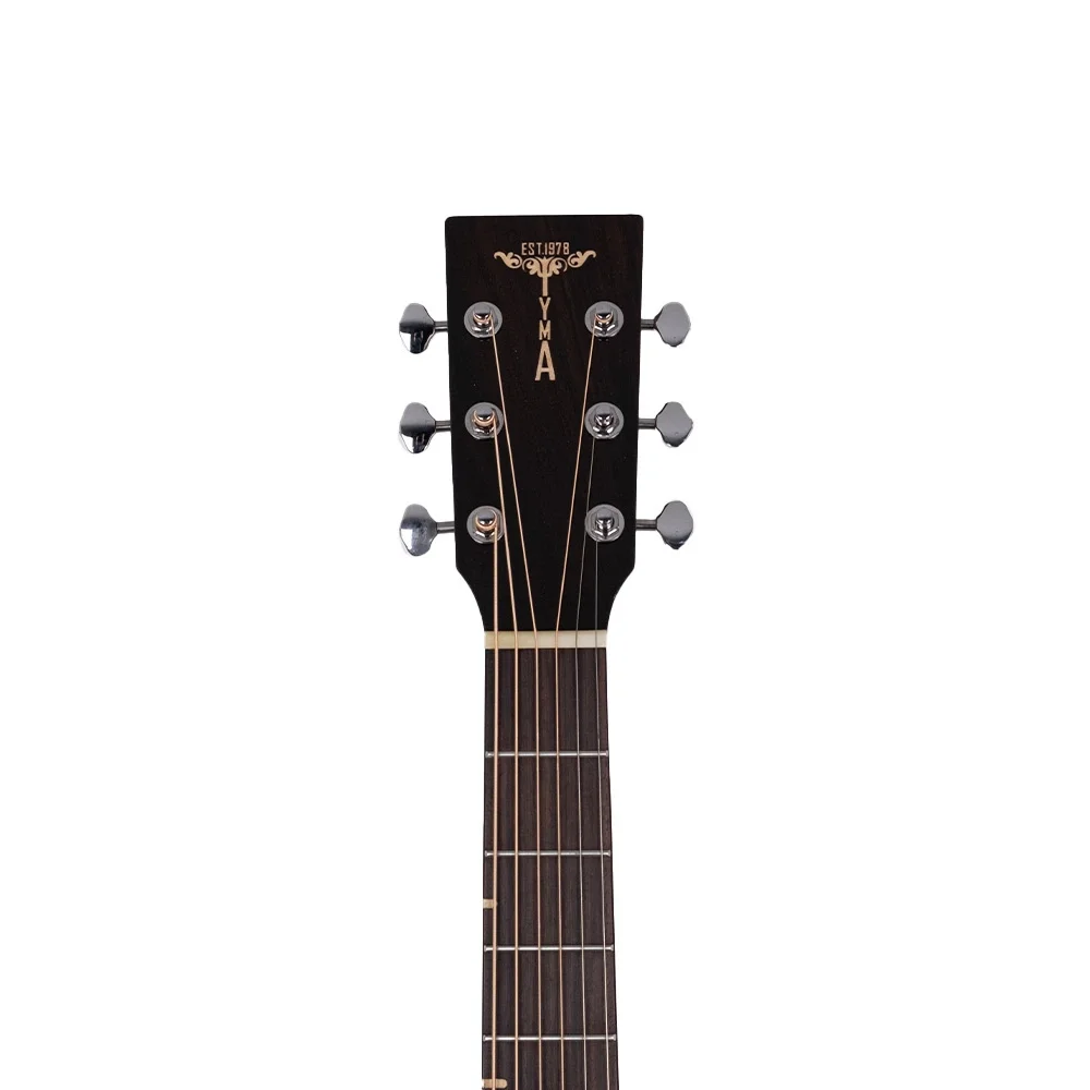 TYMA G-20S, Grand Auditorium gövde yapısıyla hem dengeli hem de projeksiyonu güçlü bir ses sunan, yüksek kaliteli malzemelerle üretilmiş bir akustik gitardır. Masif Sitka ladin üst kapak, net ve parlak tizleri öne çıkarırken, Hint gül ağacı yan ve arka kapaklar, derin ve zengin bas frekansları ile güçlü bir orta frekans dengesi sağlar. Doğal parlak cila, gitarın klasik ve zarif görünümünü tamamlar.