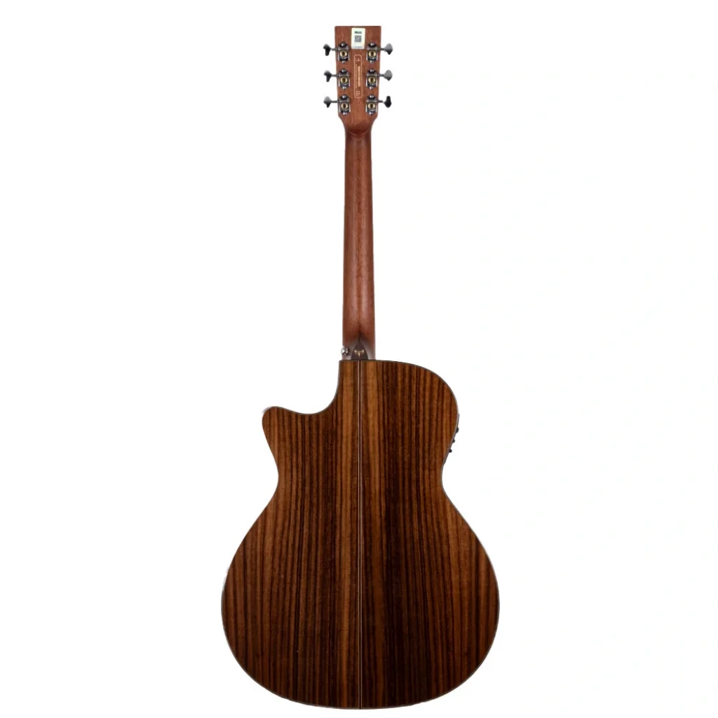 TYMA G-20S CE, Grand Auditorium gövde yapısıyla geniş bir ton yelpazesi sunan, profesyonel seviyede bir akustik-elektro gitardır. Masif Sitka ladin üst kapak, net ve güçlü bir projeksiyon sağlarken, Hint gül ağacı yan ve arka kapaklar, sıcak ve derin bir ton karakteri sunar. Doğal parlak cila, gitarın estetik görünümünü tamamlayarak premium bir his kazandırır.