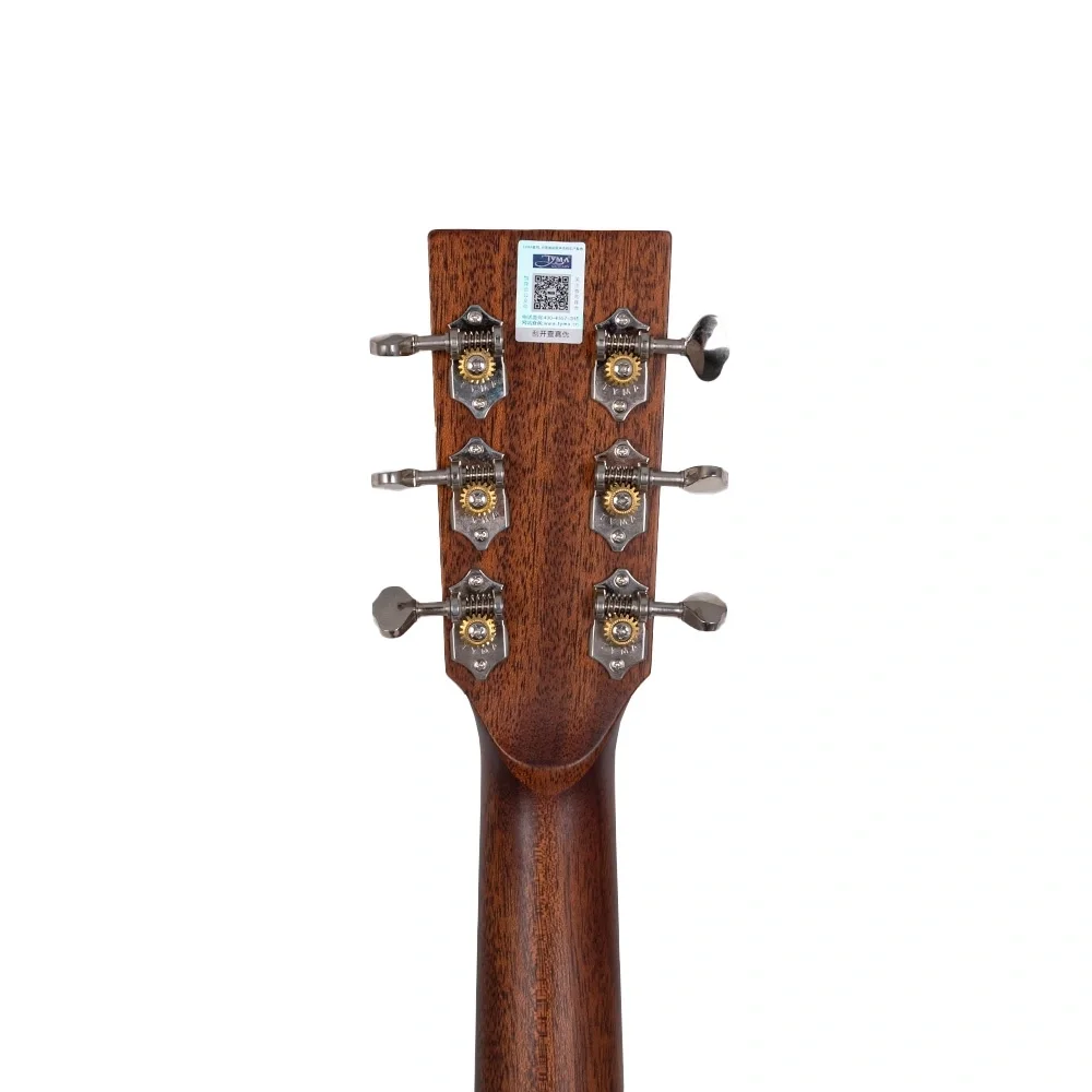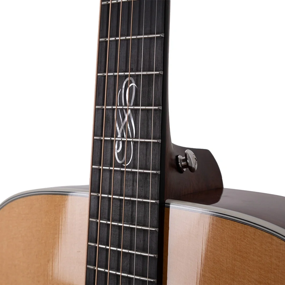 Abanoz klavyesi ve köprüsü, sıcak ve hassas bir tuşe sunarken, 43 mm kemik üst eşik ve 645 mm ölçek uzunluğu, hem profesyonel hem de amatör gitaristler için konforlu bir deneyim sağlar. Maun sap, uzun süreli çalımlarda rahat bir tutuş sunarken, açık dişli nikel burgular, hassas akort stabilitesi ve kolay ayar imkanı sunar. Sedef perde işaretleri ve ABS çember ses deliği, estetik açıdan da gitarın şık ve klasik bir görünüm kazanmasını sağlar.