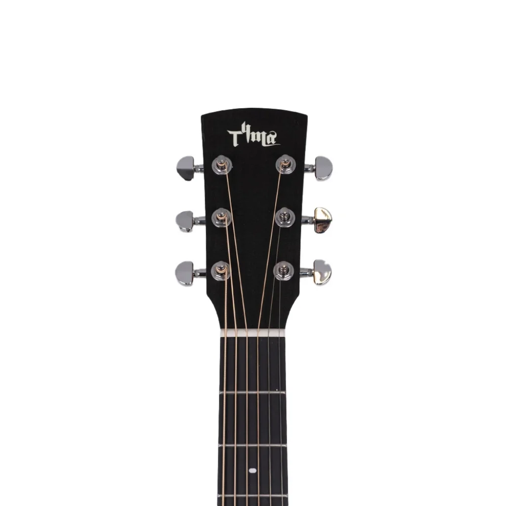 Tyma TD-5C CE, dreadnought gövde şekli ile güçlü ve dolgun bir ses profili sunan elektro akustik bir modeldir. 645 mm skala uzunluğu ve 20 perde tasarımı, rahat bir çalım deneyimi sağlayarak her seviyeden gitarist için uygun bir seçenek oluşturur. Siyah Purple Heart ağacından yapılmış tuşe, hem estetik hem de dayanıklılık açısından mükemmel bir uyum yakalar. Bu model, özellikle güçlü akorlar ve temiz melodik hatlar için idealdir.