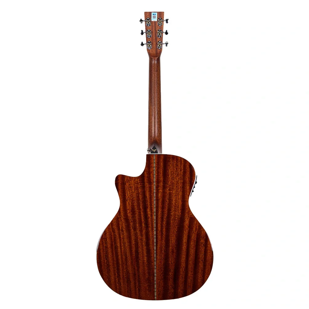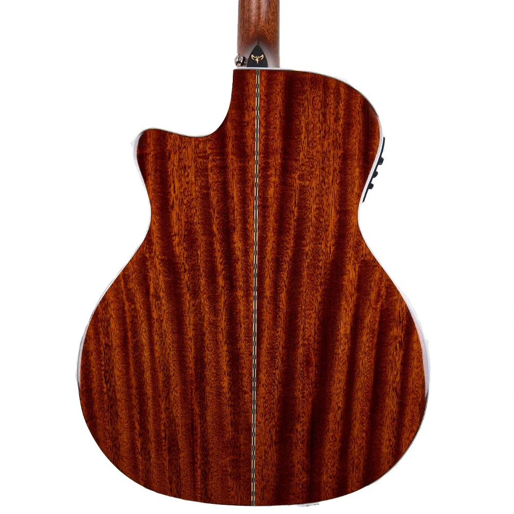 TYMA TG-15 CE, Grand Auditorium gövde yapısıyla dengeli ve geniş bir ses aralığı sunarak hem sahne hem de stüdyo kullanımı için ideal bir elektro-akustik gitardır. Masif Sitka ladin üst kapak, parlak ve net bir ton sağlarken, masif maun yan ve arka kapaklar, sıcak ve dolgun bir ses karakteri ekler. Parlak cila kaplaması, ahşabın doğal dokusunu ön plana çıkararak şık ve klasik bir görünüm kazandırır.
