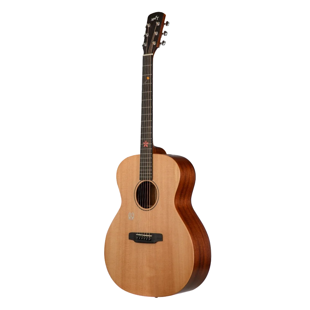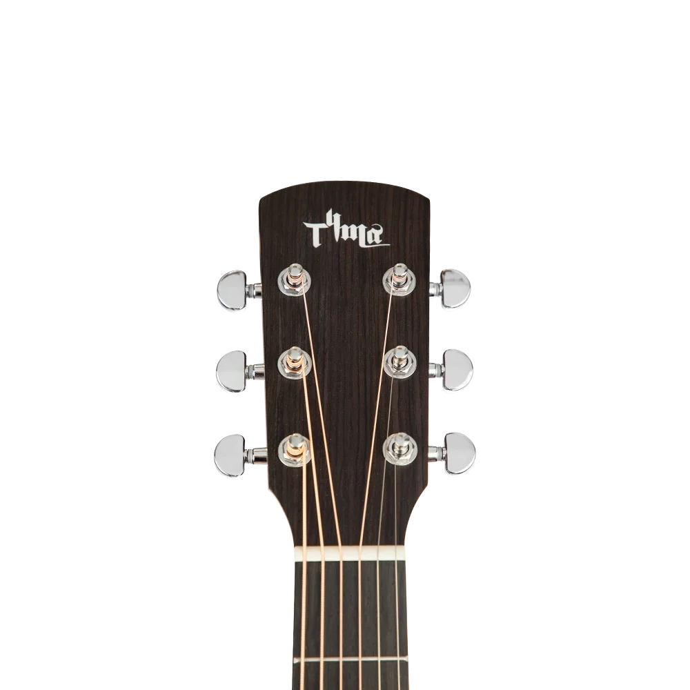 Grand Auditorium gövde yapısına sahip TYMA TG-5R, geniş dinamik aralığı ve dengeli tonuyla dikkat çeker. Sitka ladin üst kapak, parlak ve net bir ses sunarken, sapele arka ve yanlar sıcak ve rezonanslı bir ton üretir. Bu kombinasyon, gitarı hem parmak stili hem de pena ile çalım için ideal hale getirir.