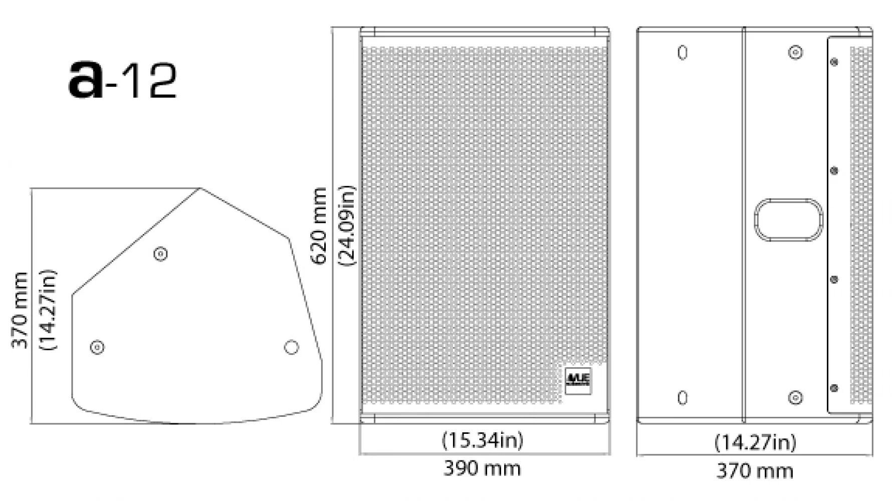 Sıkıştırma sürücüsü, hem dikey hem de yatay yönlerde ideal dağılım için döndürülebilen 70 x 55 derecelik bir kornaya bağlanmıştır. Yüksek dereceli bir geçiş ağı, a-12'nin benzersiz sürücü ve kabin kombinasyonu için özenle tasarlanmıştır. Arka panelde bulunan yüksek akım anahtarı, pasif (tek amplifikatörlü) veya çift amplifikatörlü modlar arasında hızlı konfigürasyona olanak tanır.