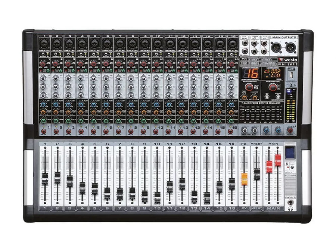 Westa WM-18PMX 18 Kanal 2x600W Power-Mixer USB / Bluetooth, 4-aux