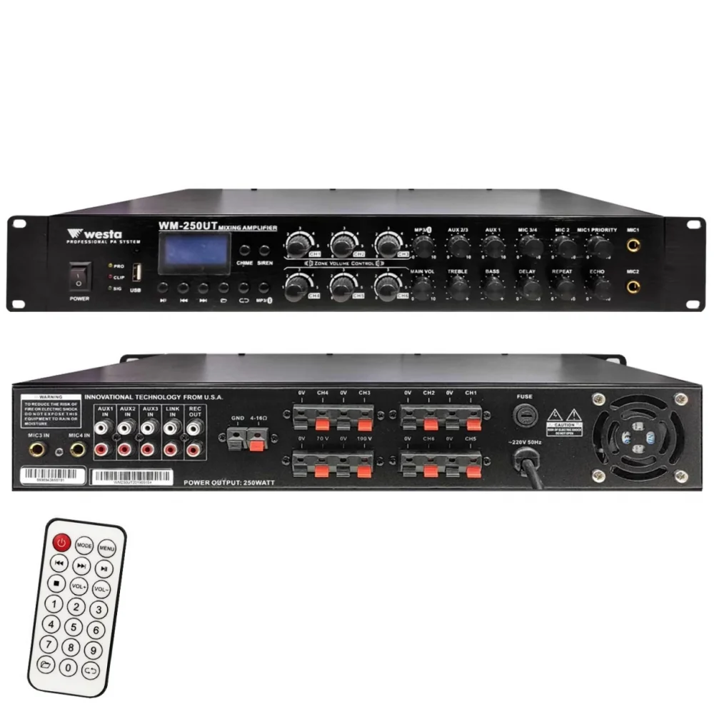 WESTA WM-250UT 6-zone Mixer-Amplifier 250W/100V 16-ohm Usb/BT