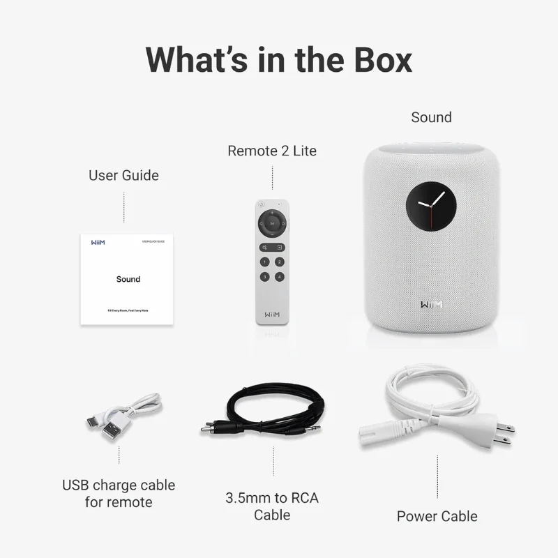 Odayı Dolduran Ses: Raf, tezgah veya duvara monte edilmiş olsun, WiiM Sound her mekana uyum sağlar ve odayı dolduran sesle doldurur. 100W Güç: 4” woofer ve çift tweeter aracılığıyla 100W güç sunar.