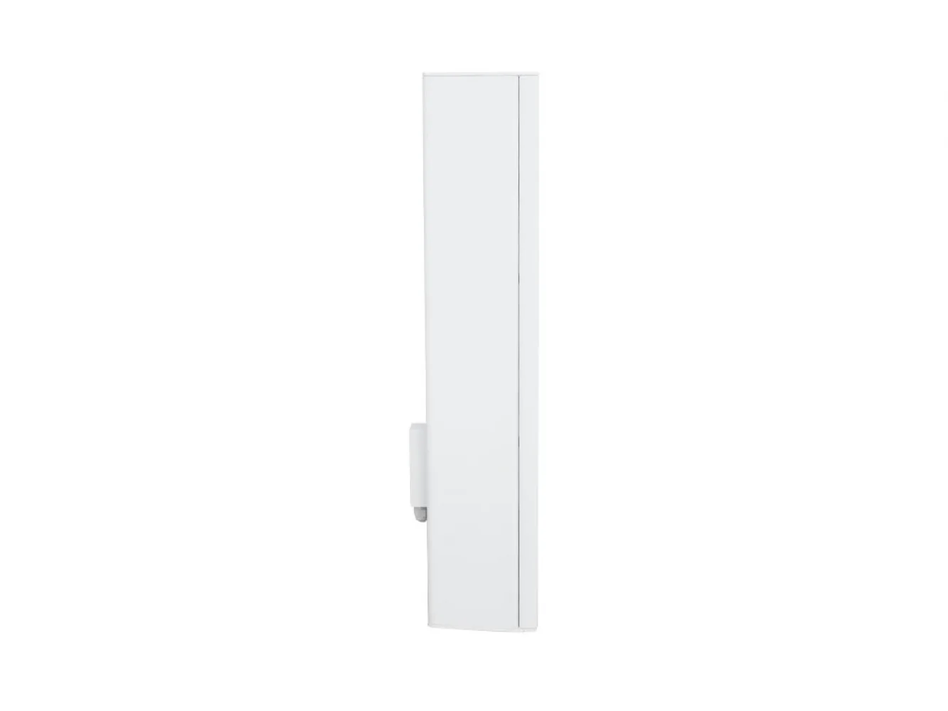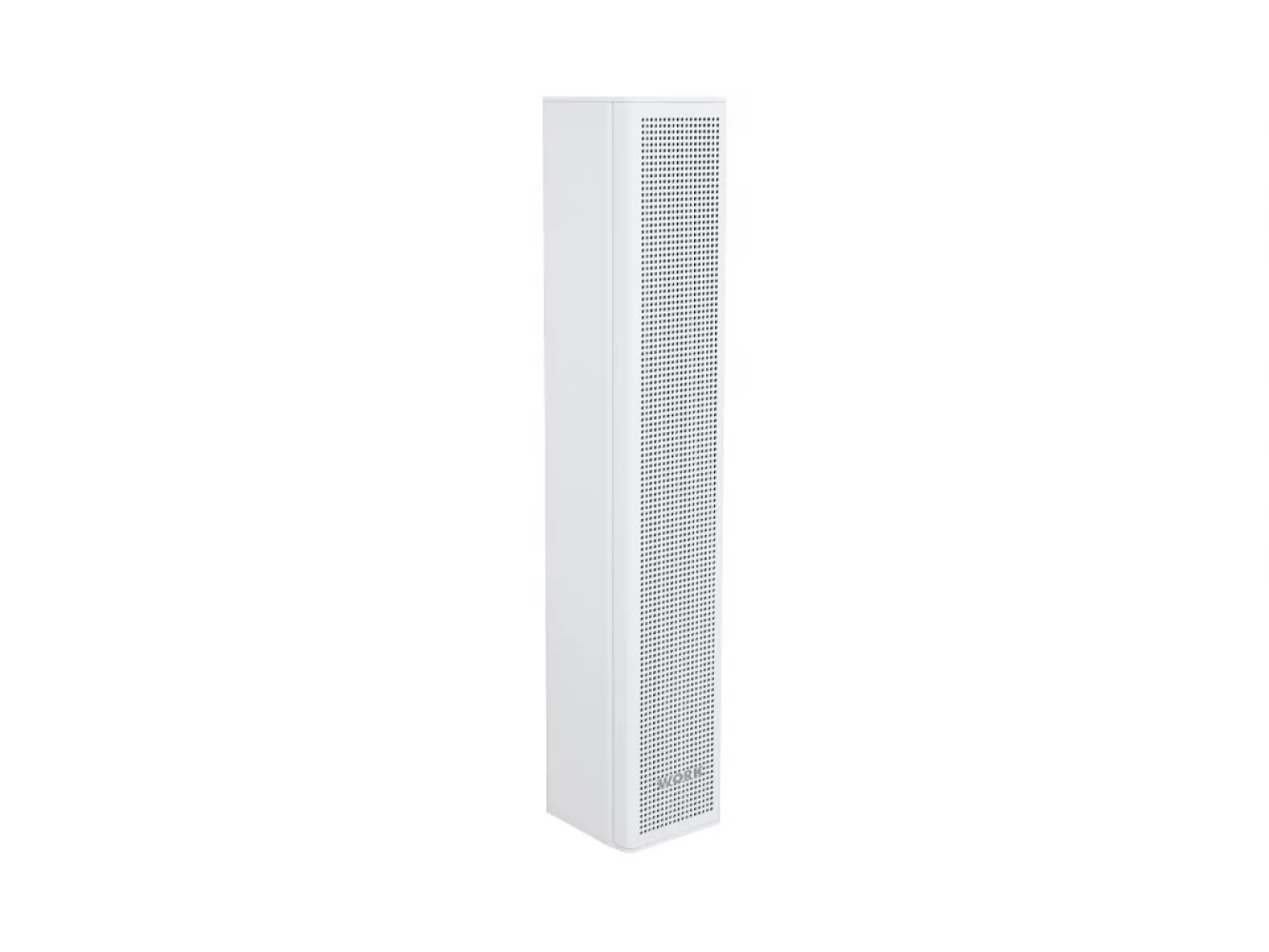 Dar ekstrüde alüminyum muhafaza, her mekanda kusursuz bir görsel entegrasyon için tasarlanmıştır ve siyah veya beyaz kaplamalı olarak mevcuttur. Izgara ayrıca alüminyumdan yapılmıştır ve dahili olarak sıçrayan su ve tozun dönüştürücülere zarar vermesini önleyen koruyucu, su geçirmez bir kumaşla kaplanmıştır ve bu sayede IP 65 koruma derecesine sahiptir. Kolonun yanlara +/- 90°'ye kadar ve iki derecelik adımlarla 0°'den 10°'ye kadar aşağı veya yukarıya doğru yönlendirilmesine olanak tanıyan bir duvara montaj aksesuarı dahildir.