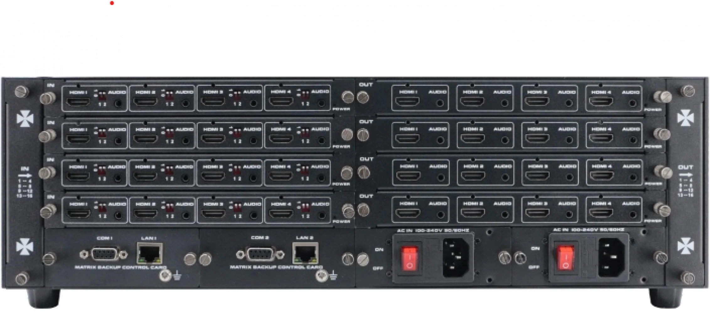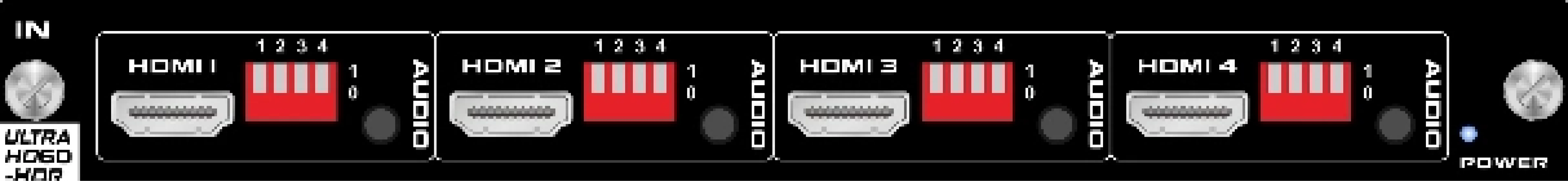 Bu, 8x8, 16x16, 36x36 ve 80x80 modüler şasi matrislerinde kullanılmak üzere tasarlanmış, 1 kartlı 4 portlu 4K60 HDR giriş kartıdır. EDID yönetimi için 4-PIN DIP anahtarı ve her HDMI girişi için 3.5mm ses gömme özelliğini destekler.