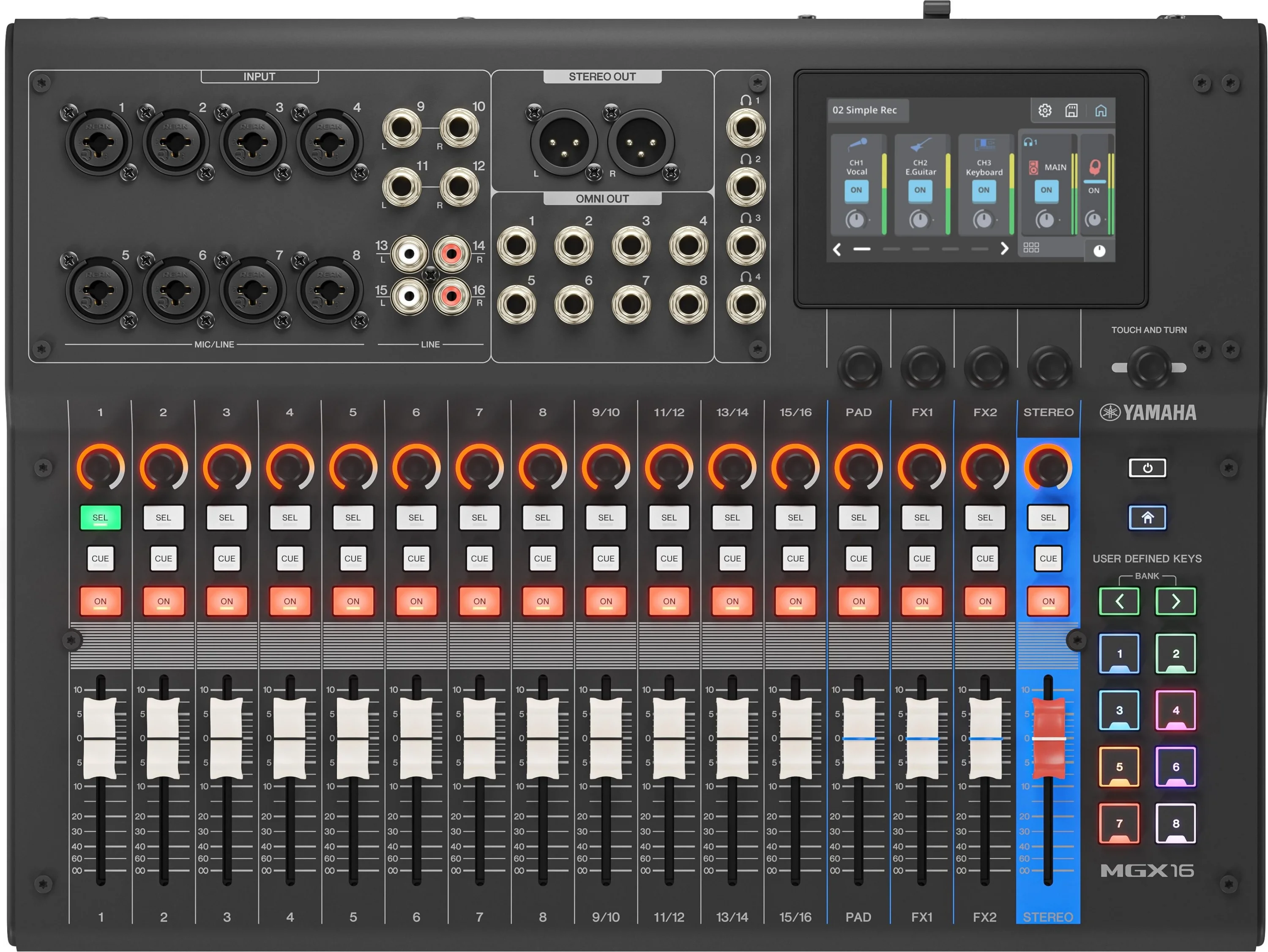 Entegre USB ses arabirimi sayesinde bilgisayarınızla doğrudan bağlantı kurarak yüksek çözünürlüklü kayıtlar yapabilir veya dijital ses kaynaklarını mikserinize aktarabilirsiniz. Kullanıcı dostu arayüzü, dayanıklı metal şasisi ve hassas fader yapısı ile MGX16, hem tur koşullarına hem de sabit sistem kurulumlarına tam uyum sağlayacak şekilde üretilmiştir.