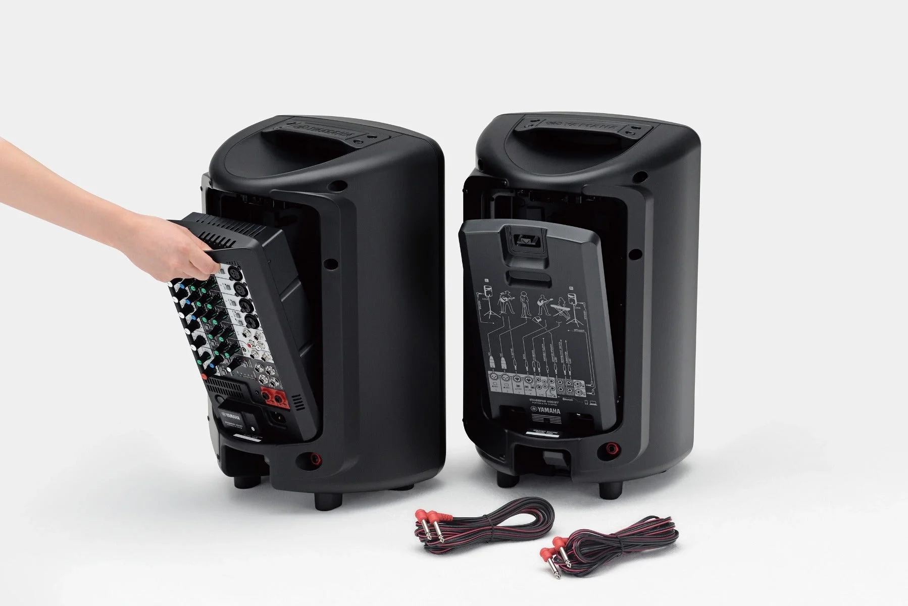 Genel Bakış: STAGEPAS 400BT, Yamaha'nın STAGEPAS serisinin bir üyesidir ve iki adet hoparlör ile dahili bir mikserden oluşur. Mikser ünitesi, taşıma sırasında hoparlörlerden birinin arkasına rahatça takılarak sistemin tek bir kompakt paket halinde taşınmasını sağlar. Bu "her şey dahil" tasarım, hızlı kurulum ve pratik kullanım sunar.