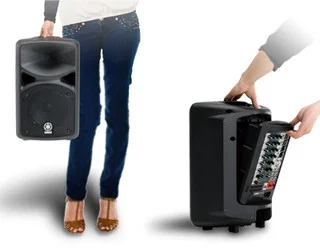 Kompakt Tasarım: Mikserin hoparlörlerden birinin arkasına takılabiliyor olması, sistemin tek bir ünite gibi taşınmasını sağlar.