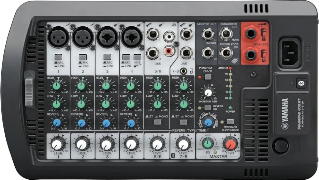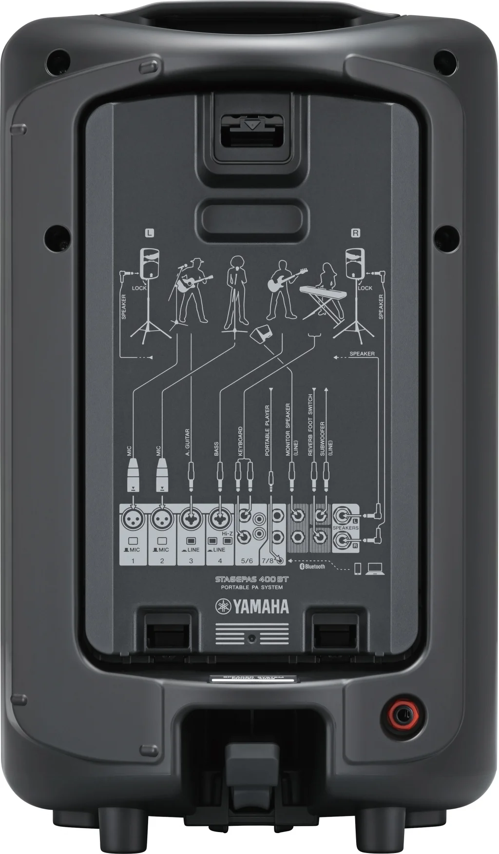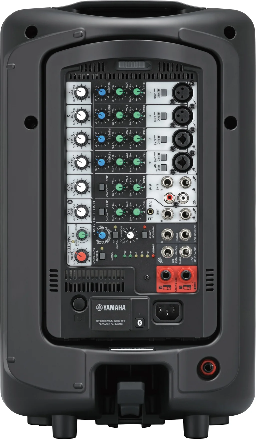 Yamaha STAGEPAS 400BT, taşınabilirlik, kolay kurulum ve yüksek kaliteli ses performansı sunan kompakt bir taşınabilir PA (Public Address) sistemidir. Küçük ve orta ölçekli etkinlikler, canlı müzik performansları, konuşmalar, sunumlar ve dersler gibi çeşitli uygulamalar için tasarlanmıştır. "BT" takısı, Bluetooth bağlantı özelliğine sahip olduğunu gösterir.